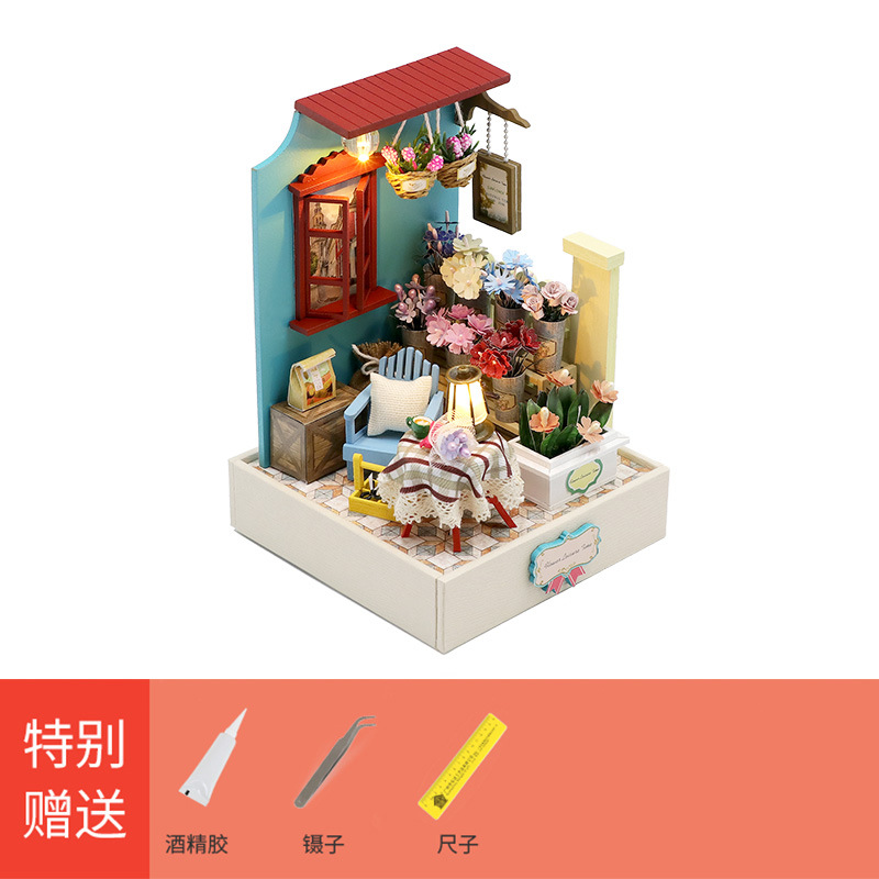 홍다 DIY 코티지 미니어처 빌딩 모델 나무 퍼즐 수제 인형 집 작은 손으로 만든 도매 DIY 세트스토어 가기