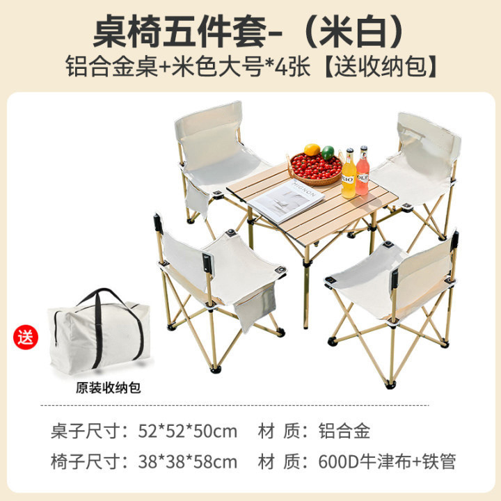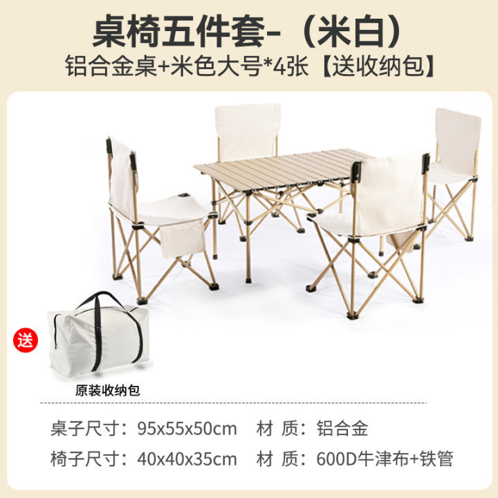 야외 접이식 테이블과 의자 휴대용 피크닉 테이블 계란 롤 테이블 알루미늄 합금 캠핑 테이블과 의자 세트 흰색 의자스토어 가기