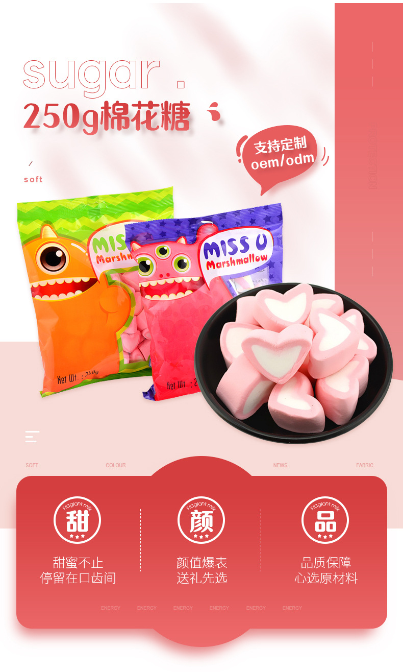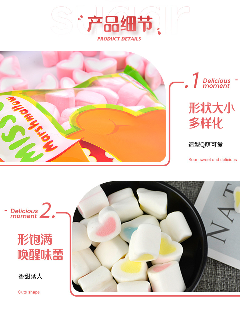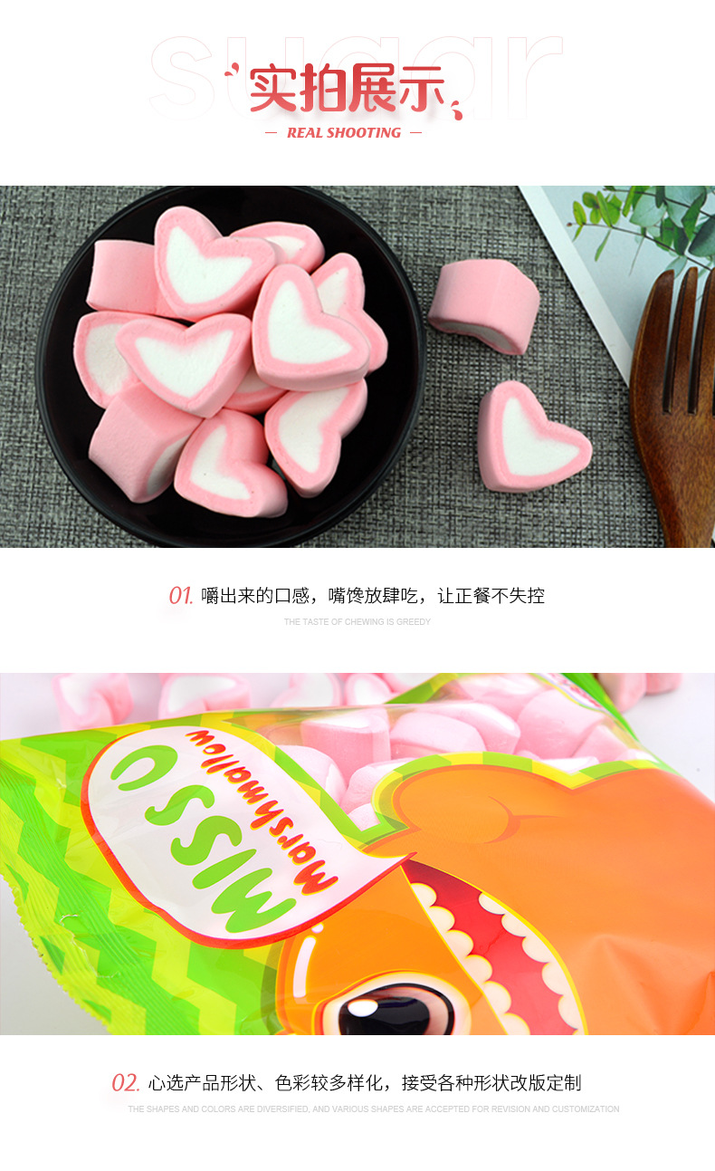 [위시치] 하트 모양 마시멜로 할랄 캔디 스낵 백 포장 멀티 소프트 캔디 수출 공장 맞춤 제작 Q탄성스토어 가기
