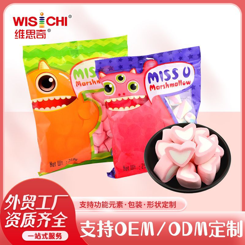 [위시치] 하트 모양 마시멜로 할랄 캔디 스낵 백 포장 멀티 소프트 캔디 수출 공장 맞춤 제작 Q탄성