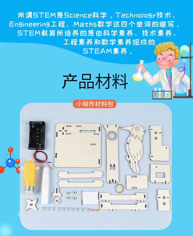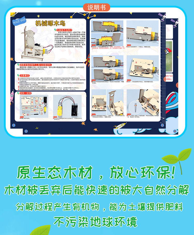 학생들의 재미있는 퍼즐 수제 발명 기술 소량 제작 DIY 딱따구리 어린이 과학 및 교육 장난감 재료 가방스토어 가기
