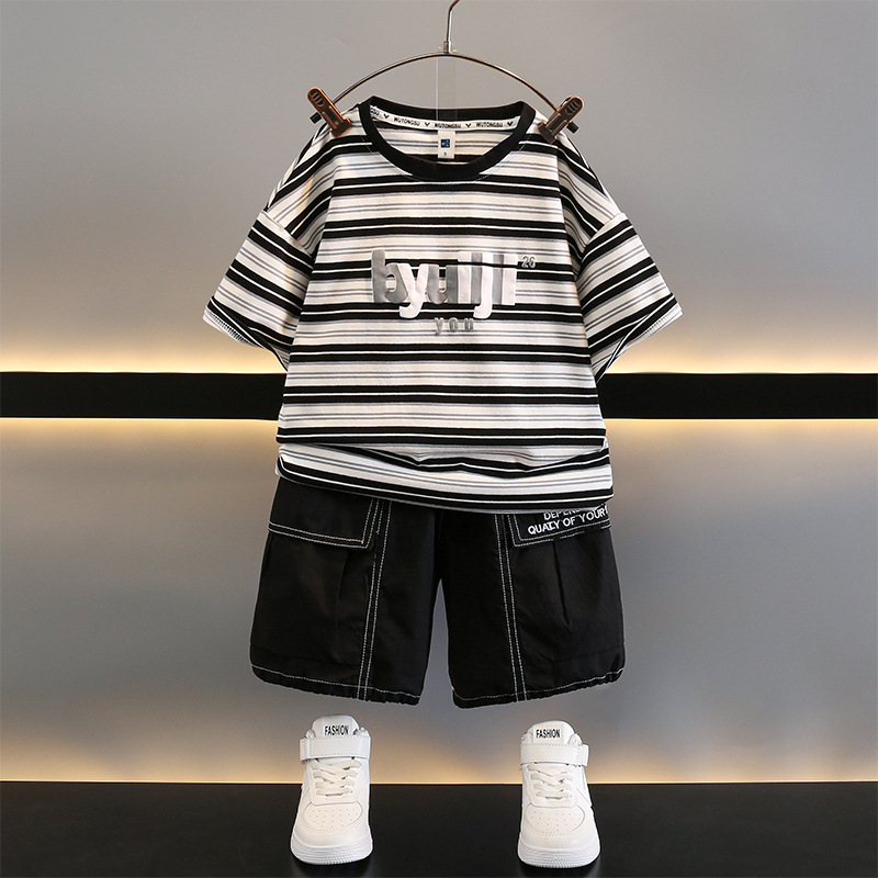 童装夏季短袖套装2023新款儿童帅气宝宝衣服网红时髦条纹两件套潮超值价:¥42.8