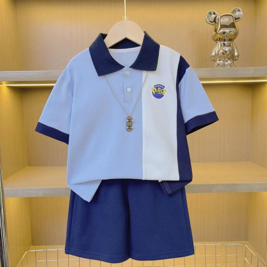 童装夏季衣服 2023新款男童棉质英伦风短袖TPOLO衫两件套装潮童批超值价:¥42.8