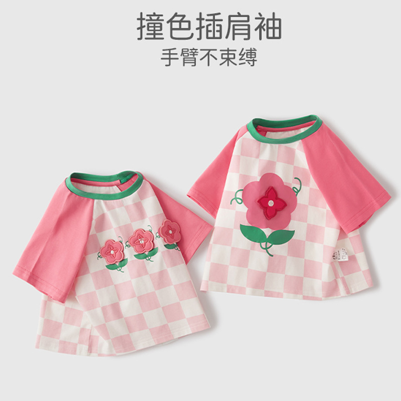 女童t恤儿童夏季短袖2023新款女宝棉质花朵刺绣百搭拼接圆领上衣超值价:¥22.8
