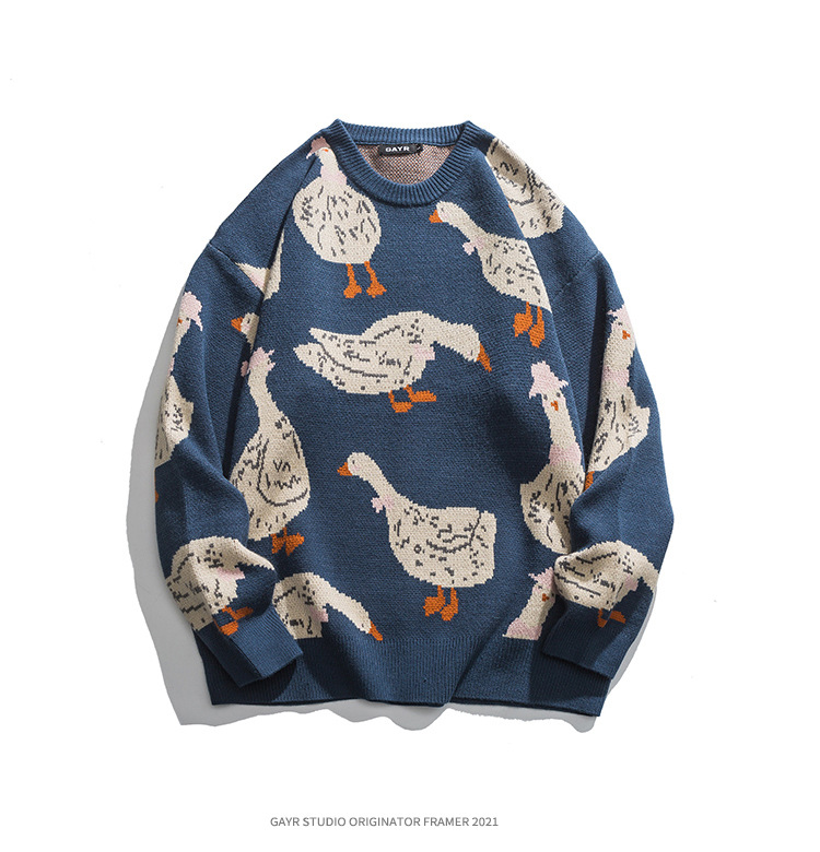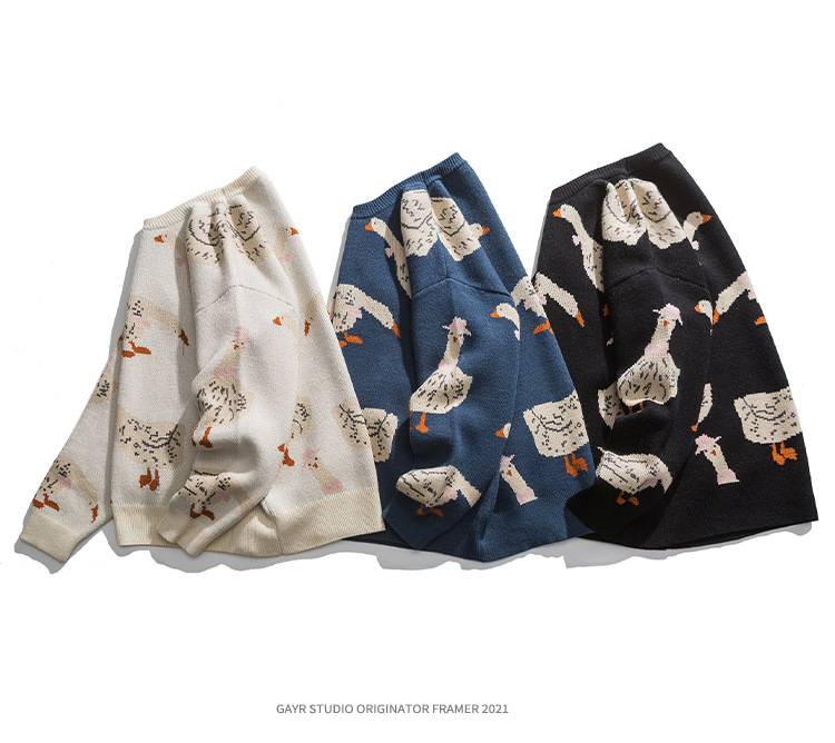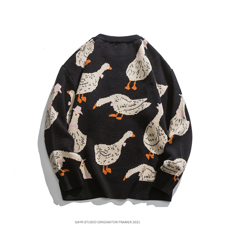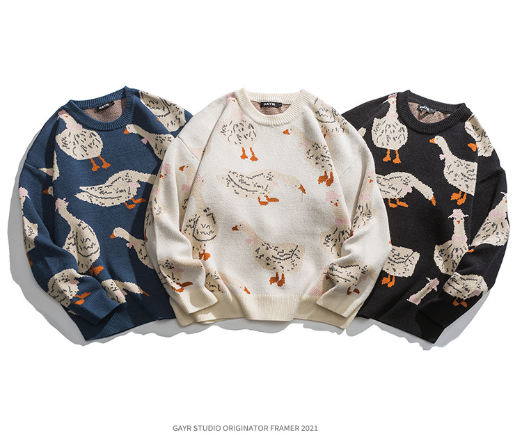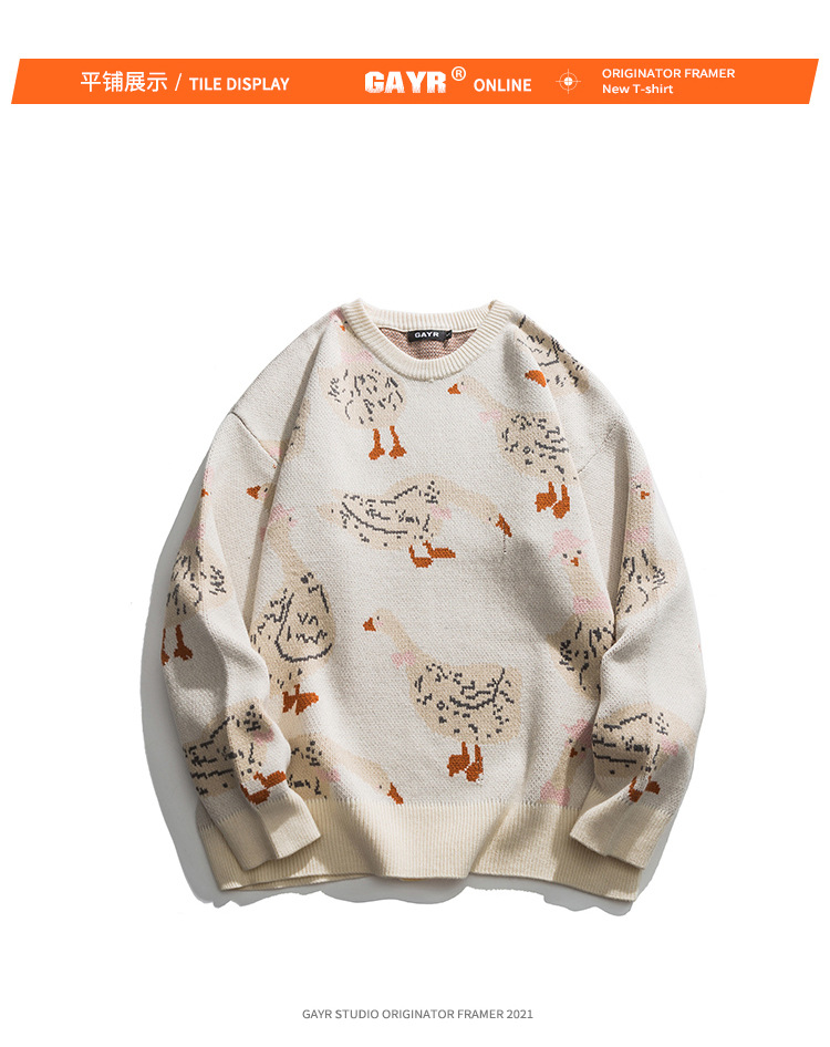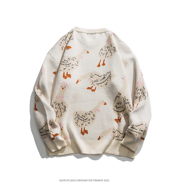 베이지에 남성복 아메리칸 스타일 트렌디 브랜드 2025 신상 가을 겨울 만화 오리 무늬 풀오버 스웨터 남녀 공용 니트웨어