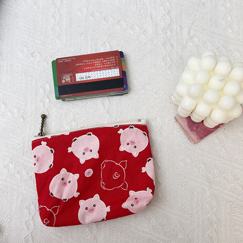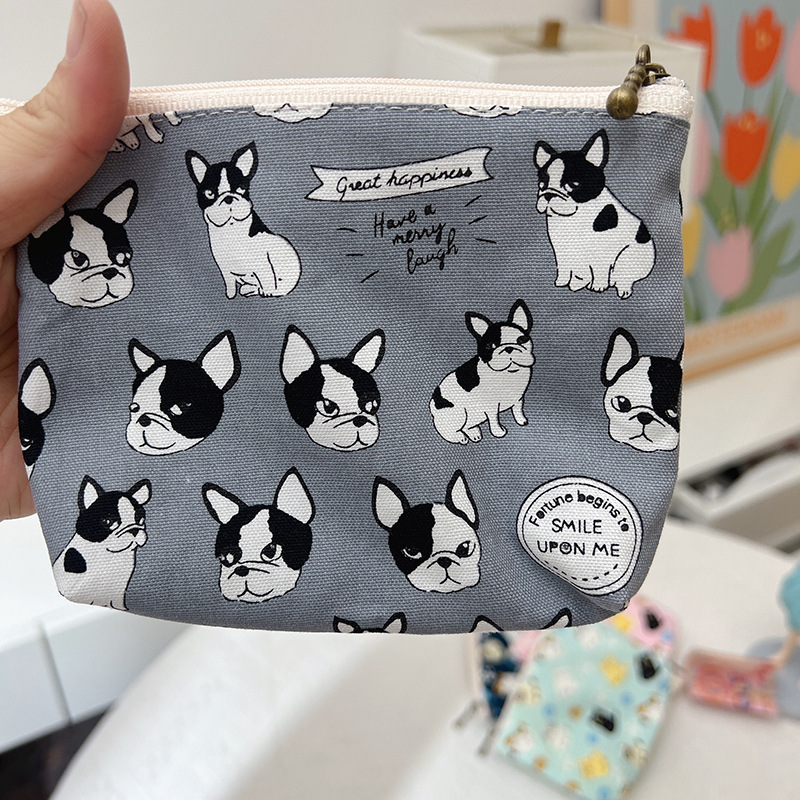 작은 지갑 여자의 작은 귀여운 휴대용 학생 캔버스 지퍼 키 휴대용 만화 얇은 간단한 동전 지갑