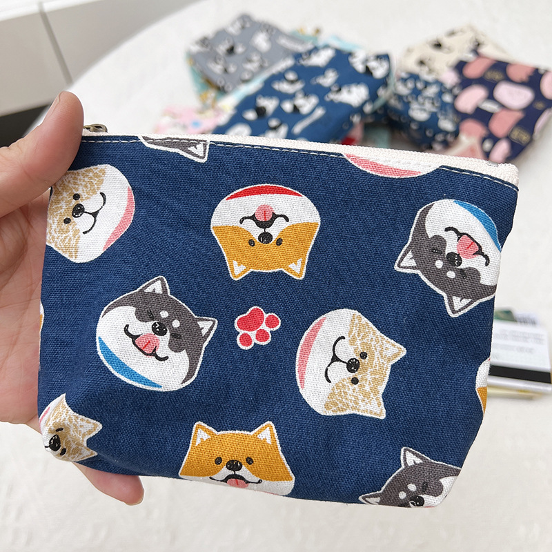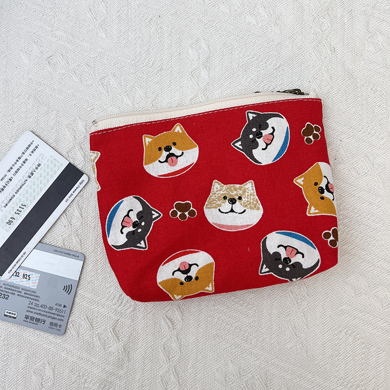작은 지갑 여자의 작은 귀여운 휴대용 학생 캔버스 지퍼 키 휴대용 만화 얇은 간단한 동전 지갑스토어 가기