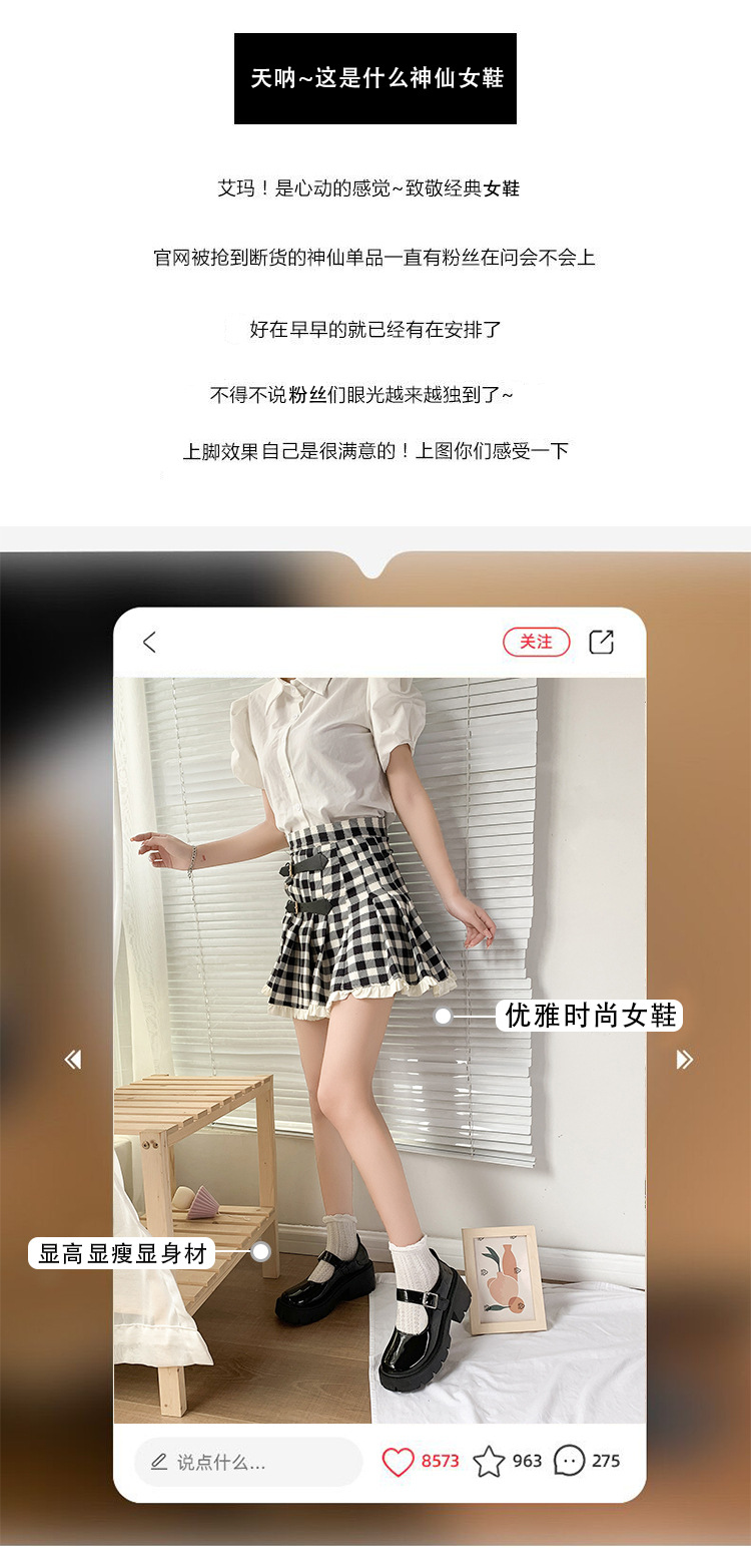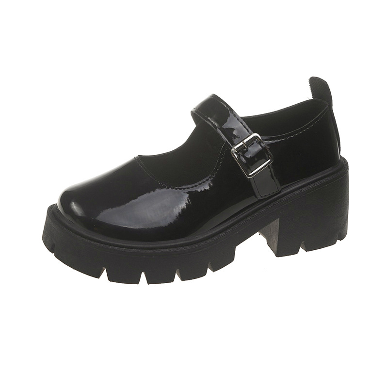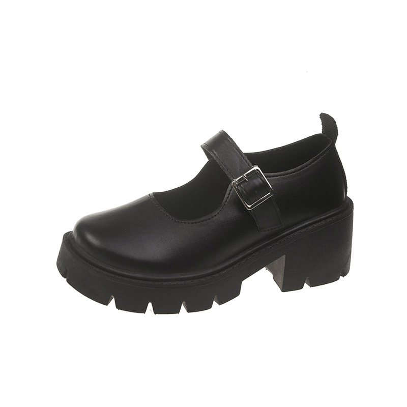 2023 봄과 가을 뉴 메리 제인 신발 큰 발가락 라운드 토 두꺼운 굽 두꺼운 밑창 아카데미 스타일 작은 싱글 레이어 신발 한국 스타일 여성용 작은 가죽 신발스토어 가기