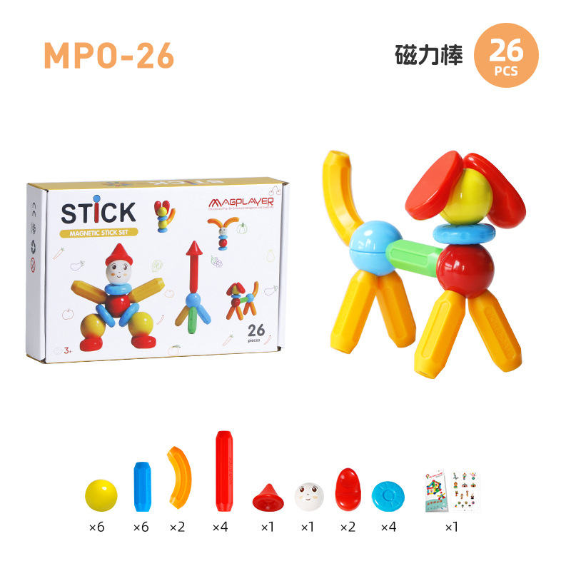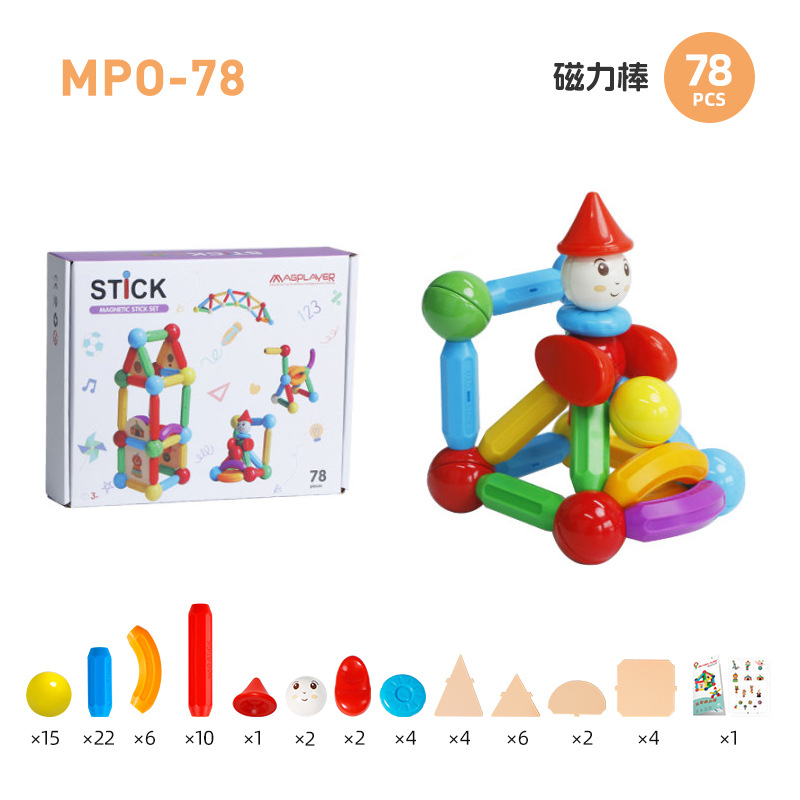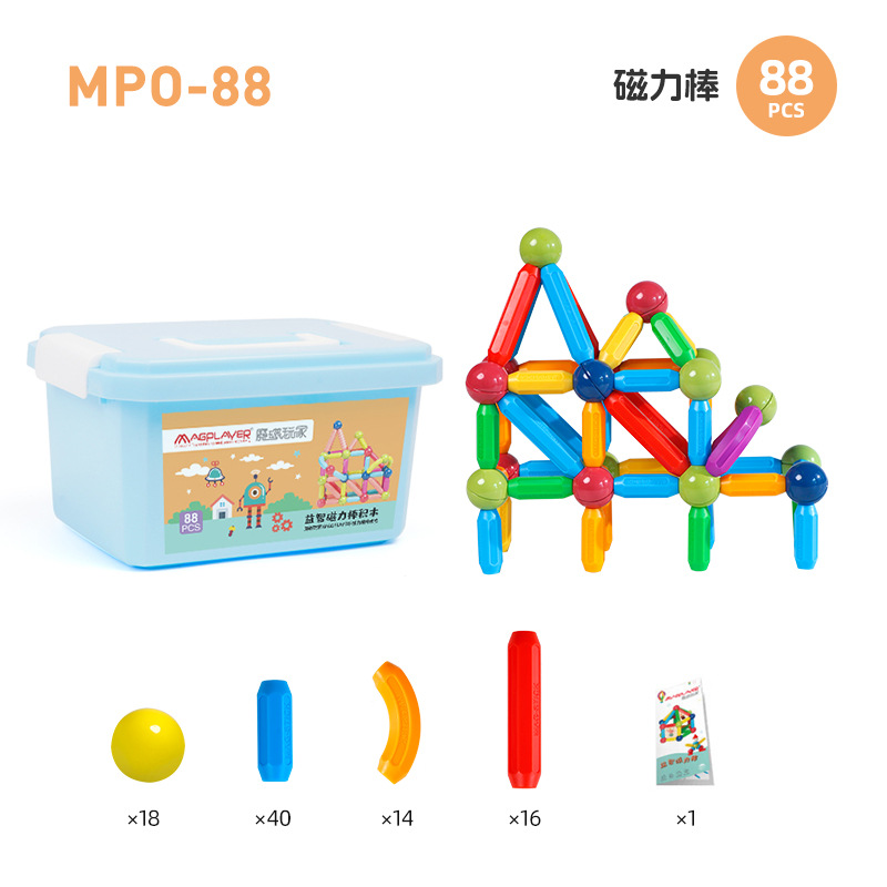 국경 간 MAGPLAYER 컬러 자기 막대 빌딩 블록 대형 입자 어린이 교육 자기 조립 장난감 세트 3 세