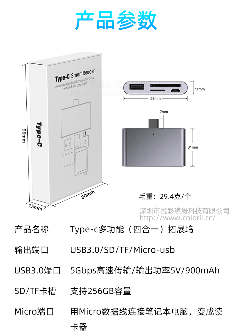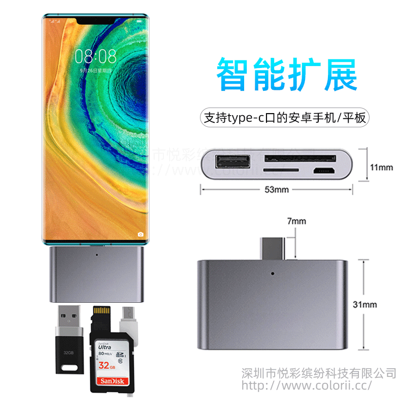 USB2.0 4-in-1 카드 리더기 SD 카드/TF 카드 읽기 다기능 타입-C 휴대폰 허브