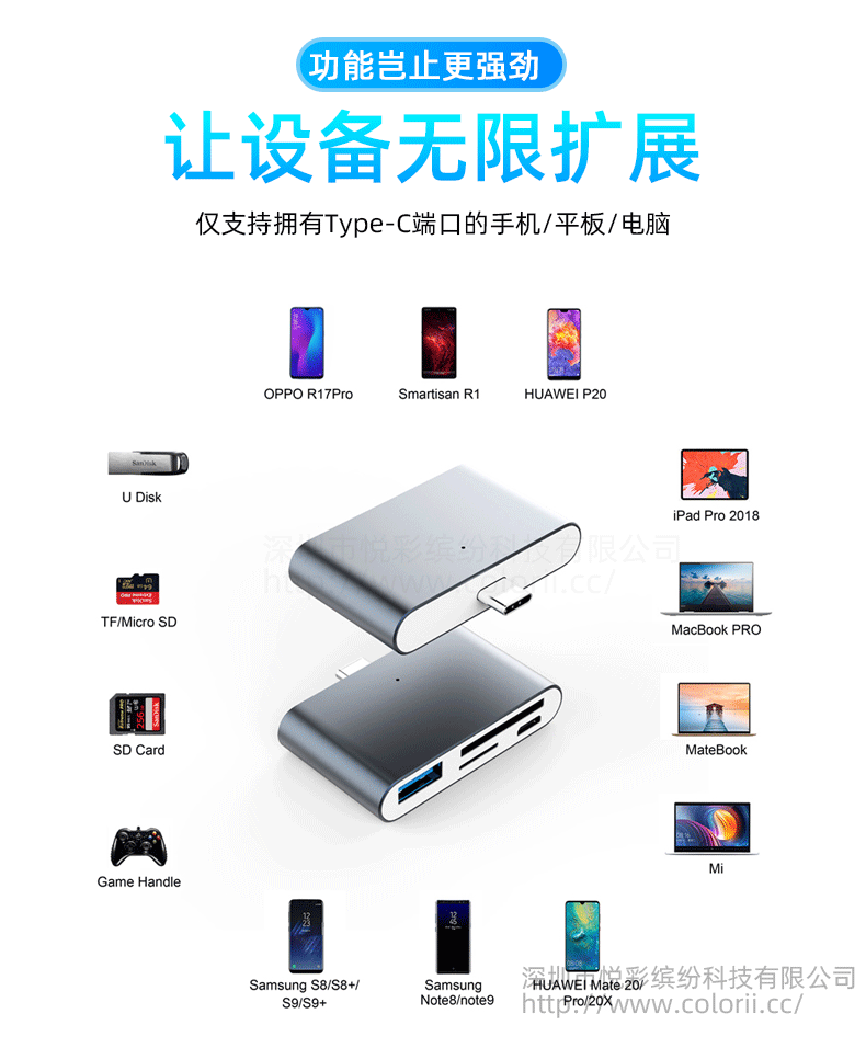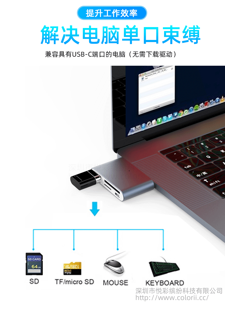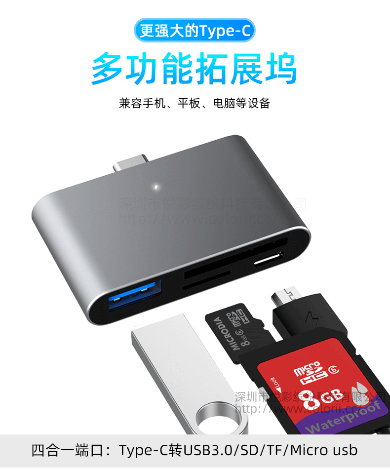 USB2.0 4-in-1 카드 리더기 SD 카드/TF 카드 읽기 다기능 타입-C 휴대폰 허브스토어 가기