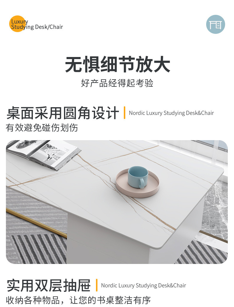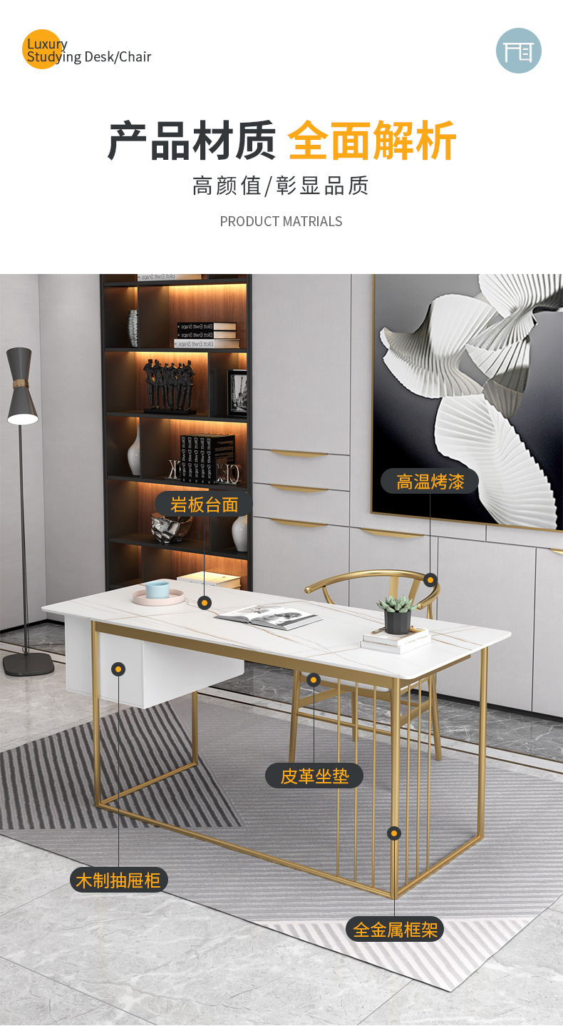 북유럽 조명 럭셔리 록 보드 컴퓨터 책상 학생 쓰기 책상 사무실 테이블 및 의자 조합 연구 테이블 홈 더블 데스크스토어 가기