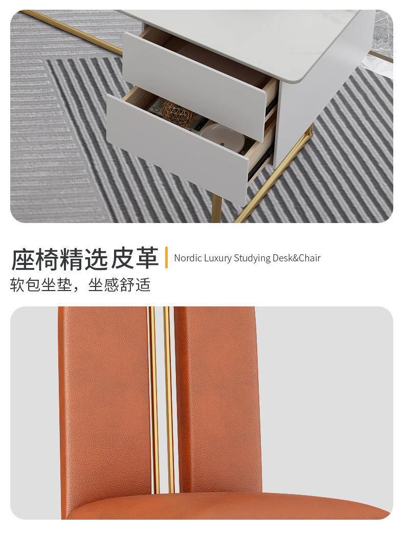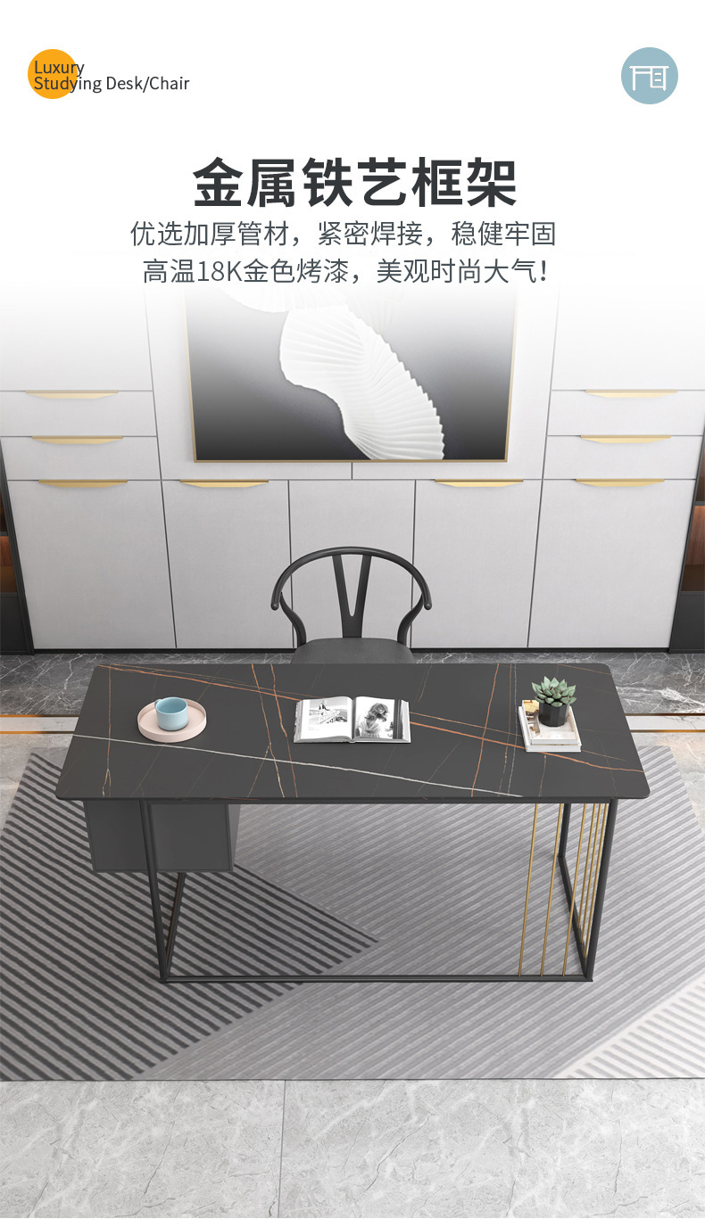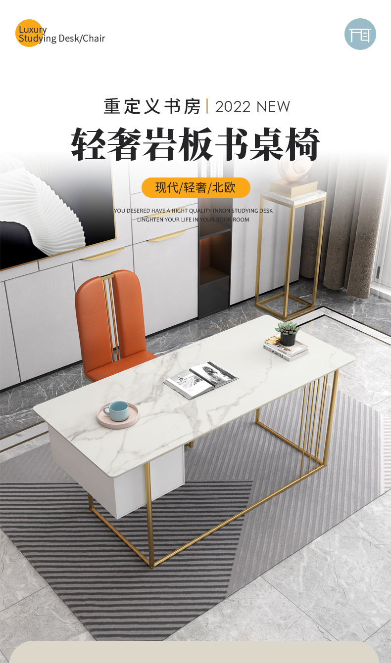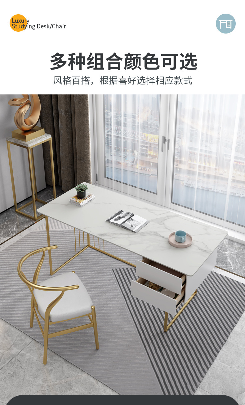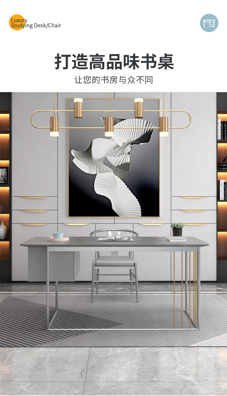 북유럽 조명 럭셔리 록 보드 컴퓨터 책상 학생 쓰기 책상 사무실 테이블 및 의자 조합 연구 테이블 홈 더블 데스크