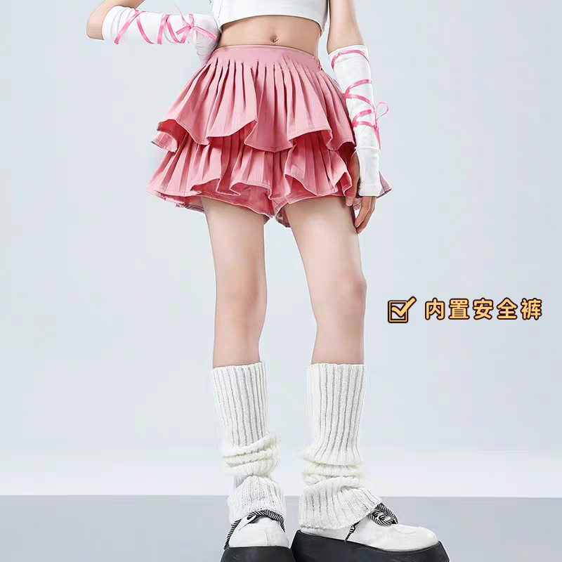 • 핑크 더블 레이어 스커트 내장 안전 바지