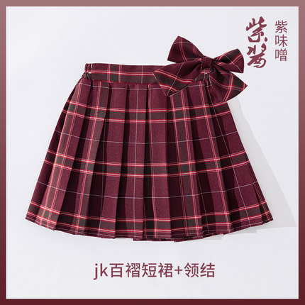 • 라즈베리 홍차 격자 무늬 치마 + 나비 넥타이