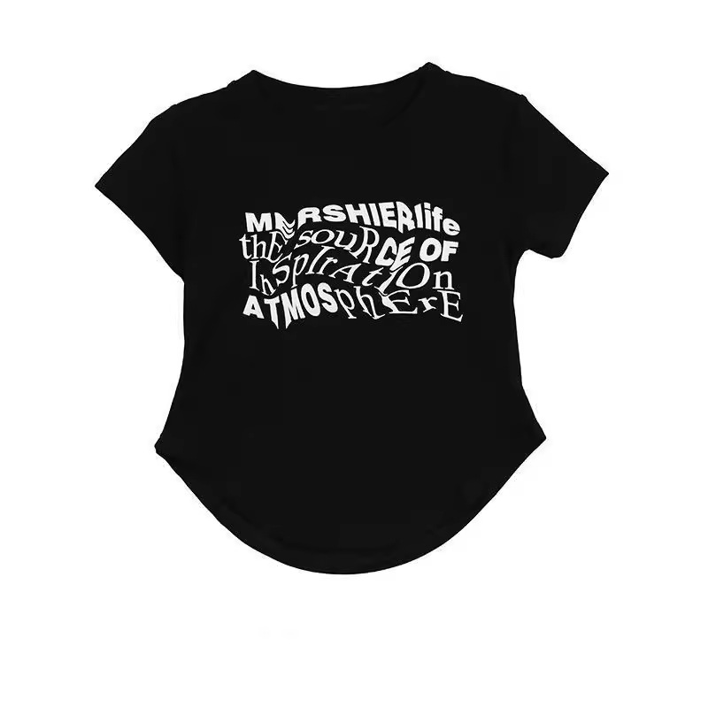 • 검은 편지 짧은 소매 화이트 케이크 스커트 내장 안전 바지
