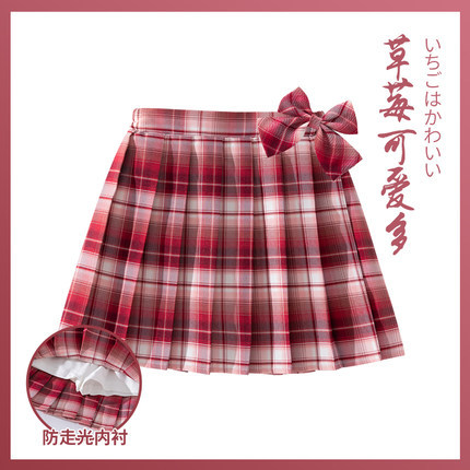 • 딸기 멀티 체크 스커트 + 나비 넥타이