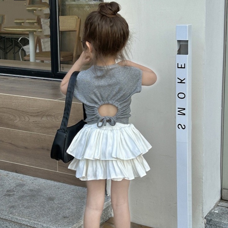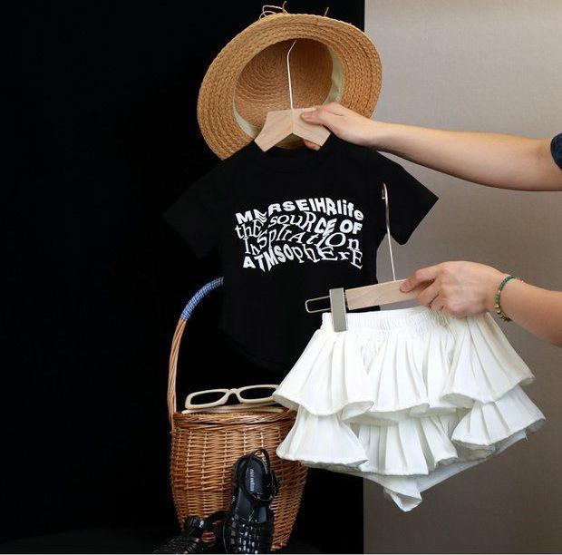 여름 신상품 대학풍 공연 의상 중대형 소녀 어린이 초등학생 댄스 생일 주름치마 세트