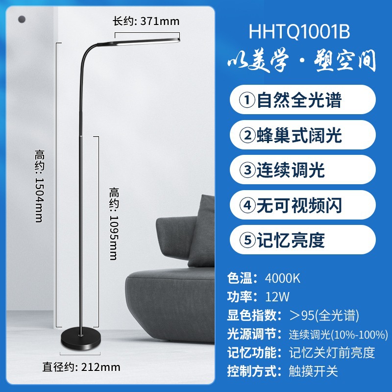 • 12W 풀 스펙트럼 플로어 램프 블랙 HHTQ1001B