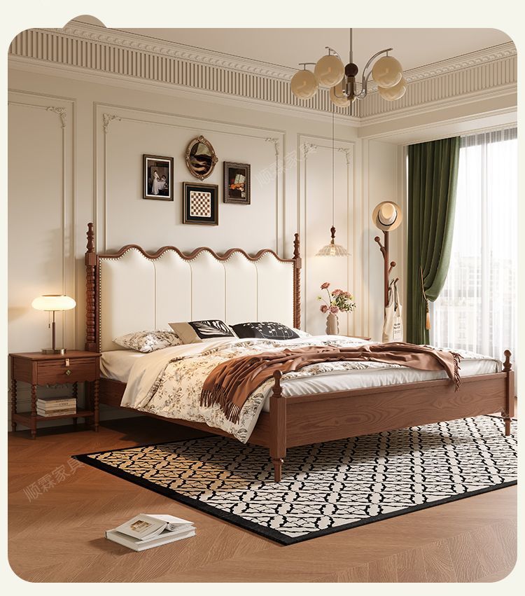 아메리칸 스타일 단단한 나무 침대 화이트 라이트 럭셔리 2 m 퀸 침대 1.8 m 더블 마스터 침실 웨딩 침대 국가 정원 공주 어린이 침대스토어 가기