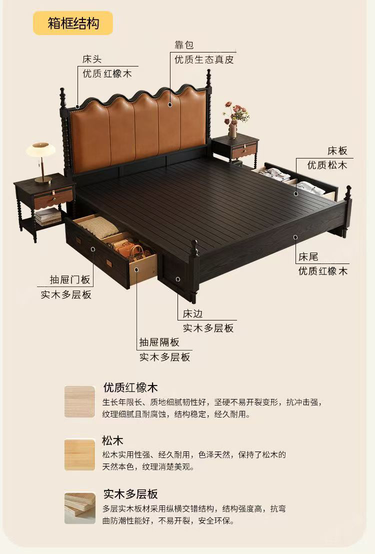 아메리칸 스타일 단단한 나무 침대 화이트 라이트 럭셔리 2 m 퀸 침대 1.8 m 더블 마스터 침실 웨딩 침대 국가 정원 공주 어린이 침대
