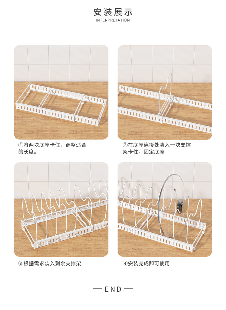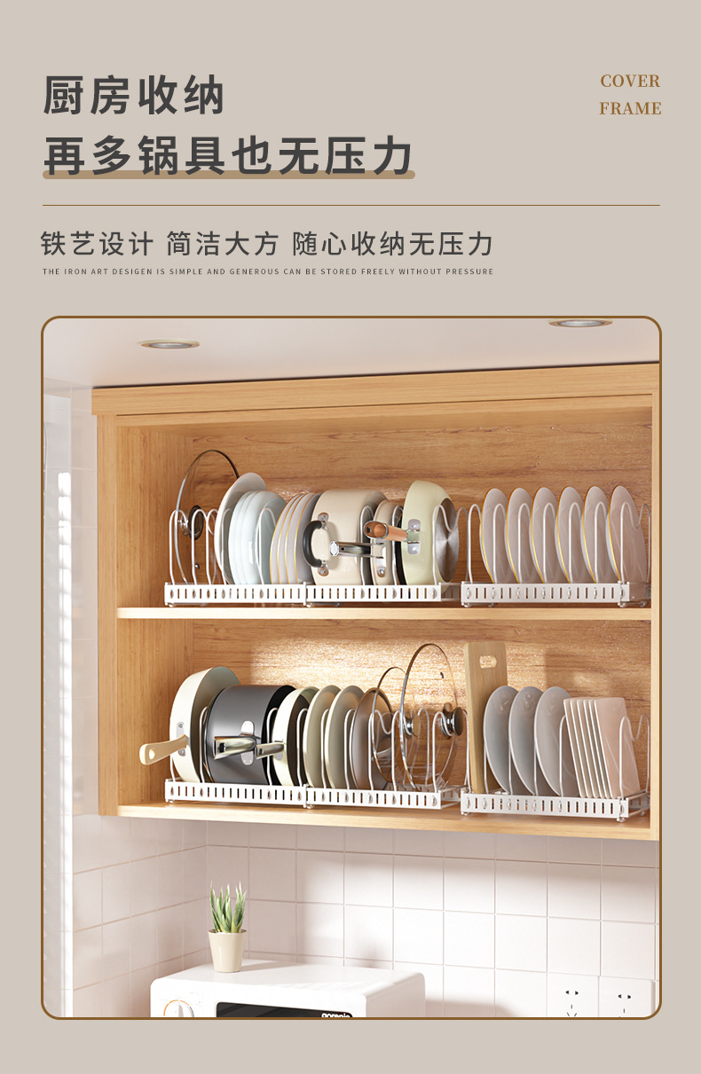 25년 신형 냄비뚜껑걸이, 철제 조절식 텔레스코픽 캐비닛, 냄비, 주방용품 수납, 조리대 식기걸이, 수납선반