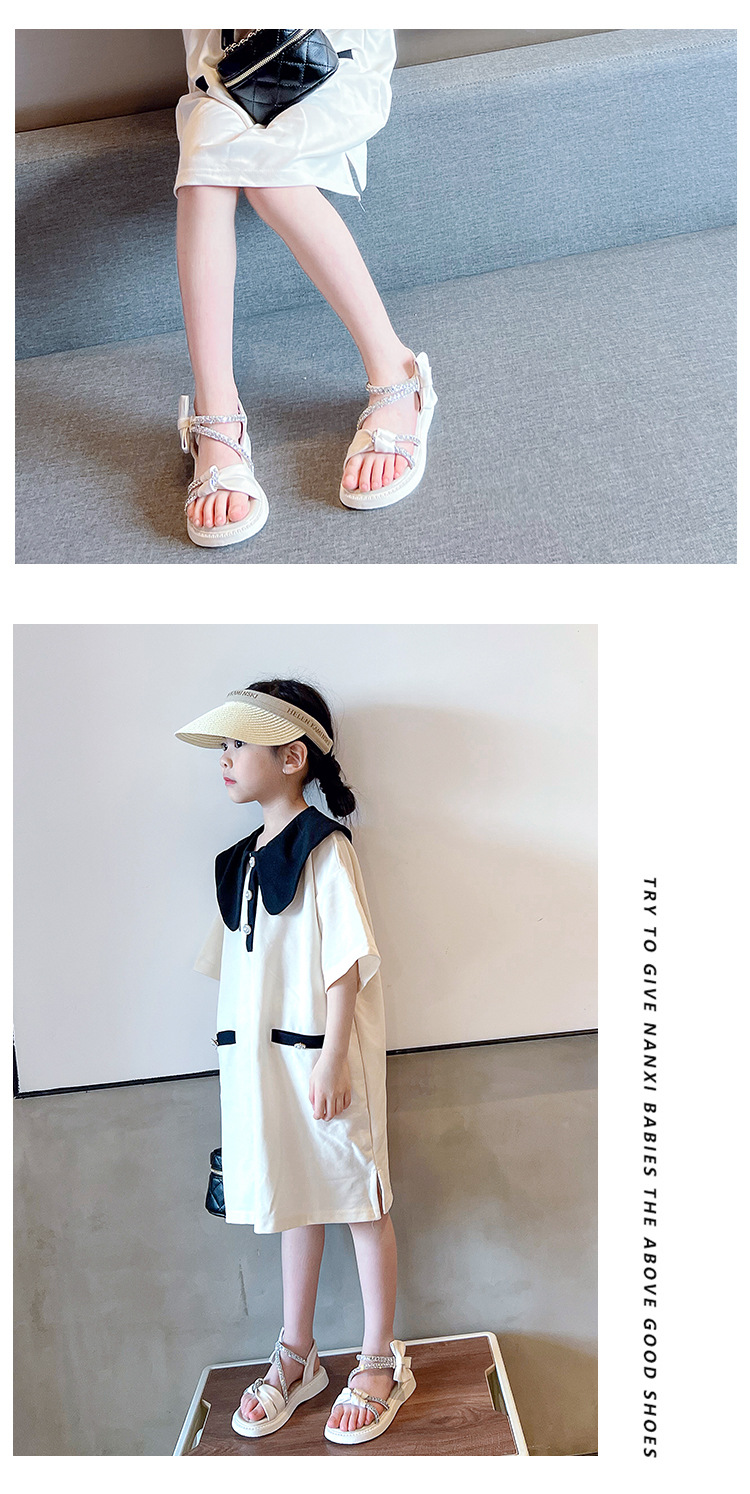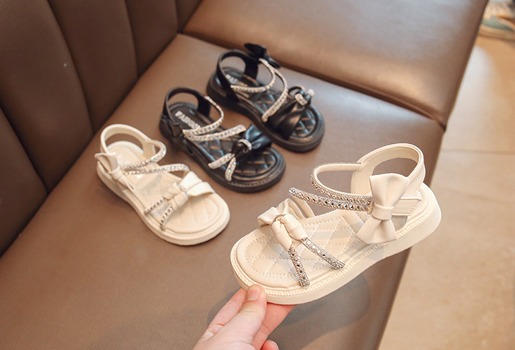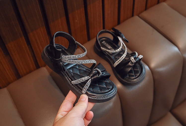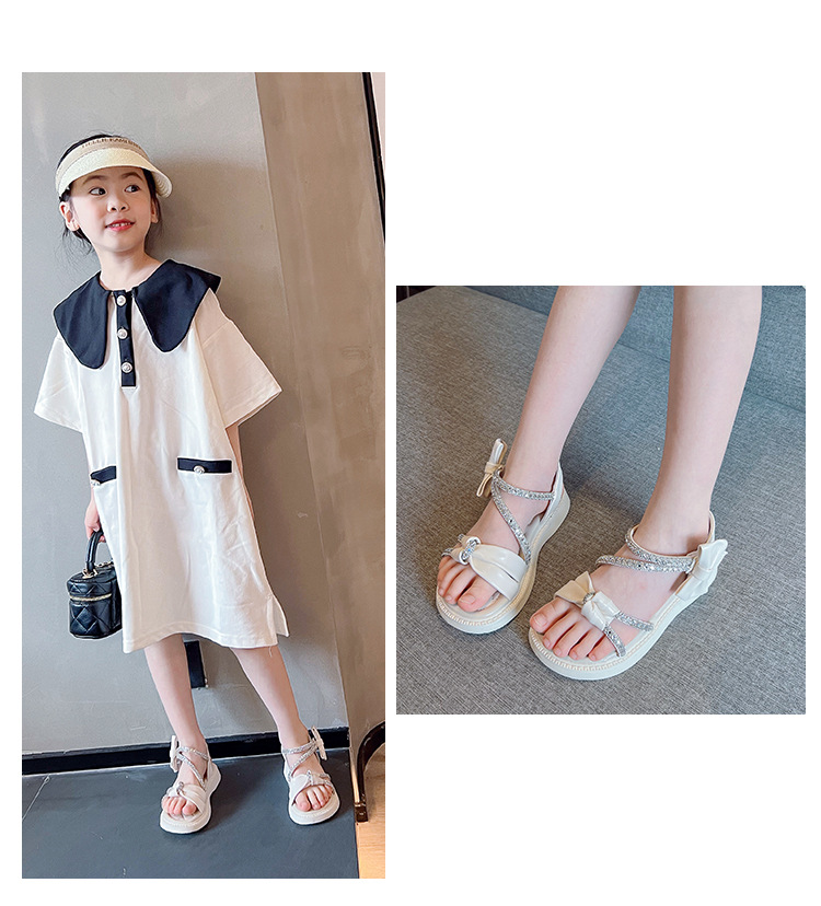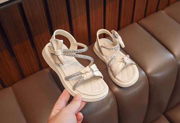 여자 샌들 여름 새로운 부드러운 바닥 라인 석 공주 어린이 신발 여성 보물 중간 및 큰 어린이 소녀 어린이 신발 여성 신발스토어 가기