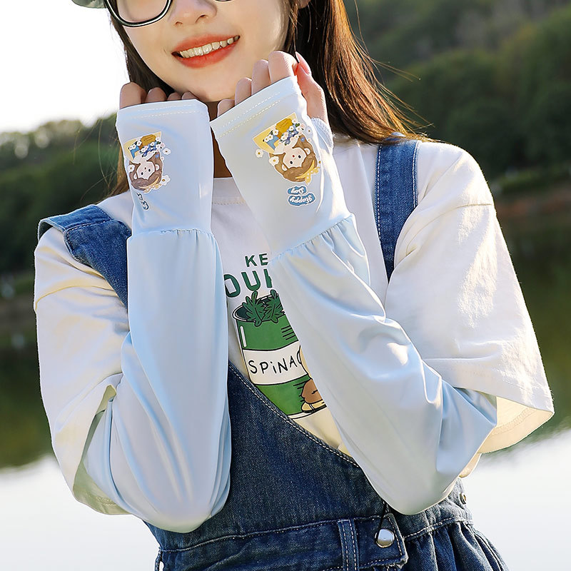 선스크린 소매 여성의 여름 얼음처럼 차가운 탄성 팔 얇은 팔 느슨한 통기성 손가락 아이스 실크 손 소매스토어 가기