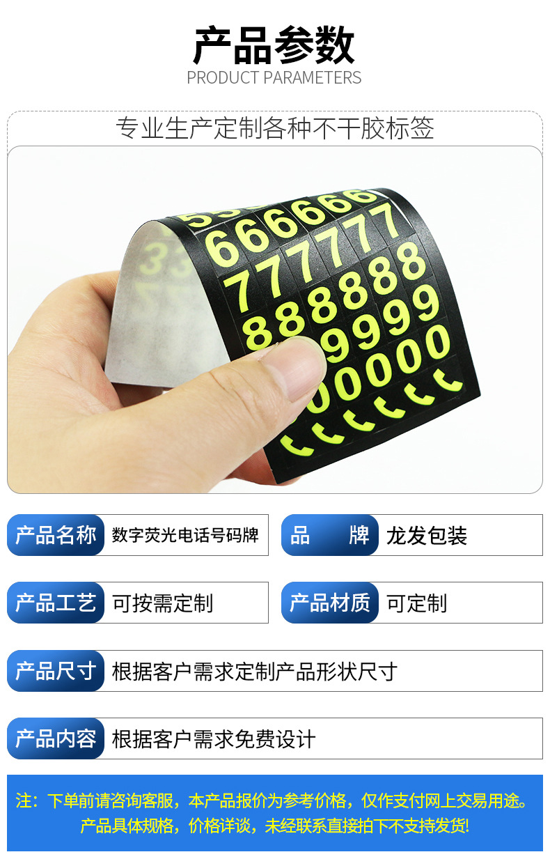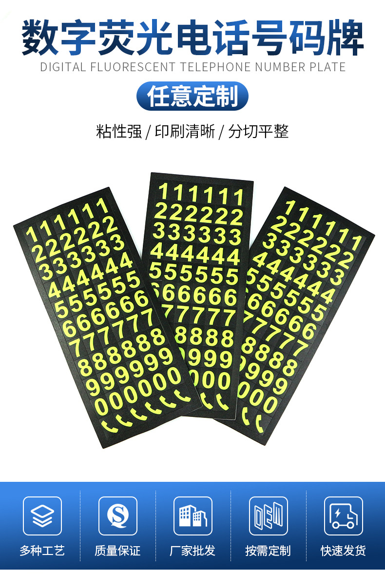 디지털 형광 전화 번호판 스티커 임시 주차 모바일 자동차 번호판 DIY 개인화 된 디지털 번호