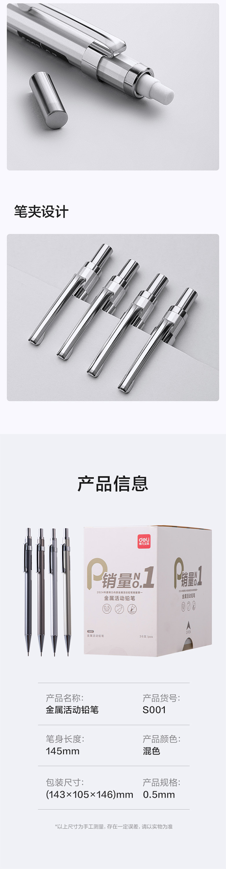• S001 금속 이동식 연필 0.5mm (혼합)