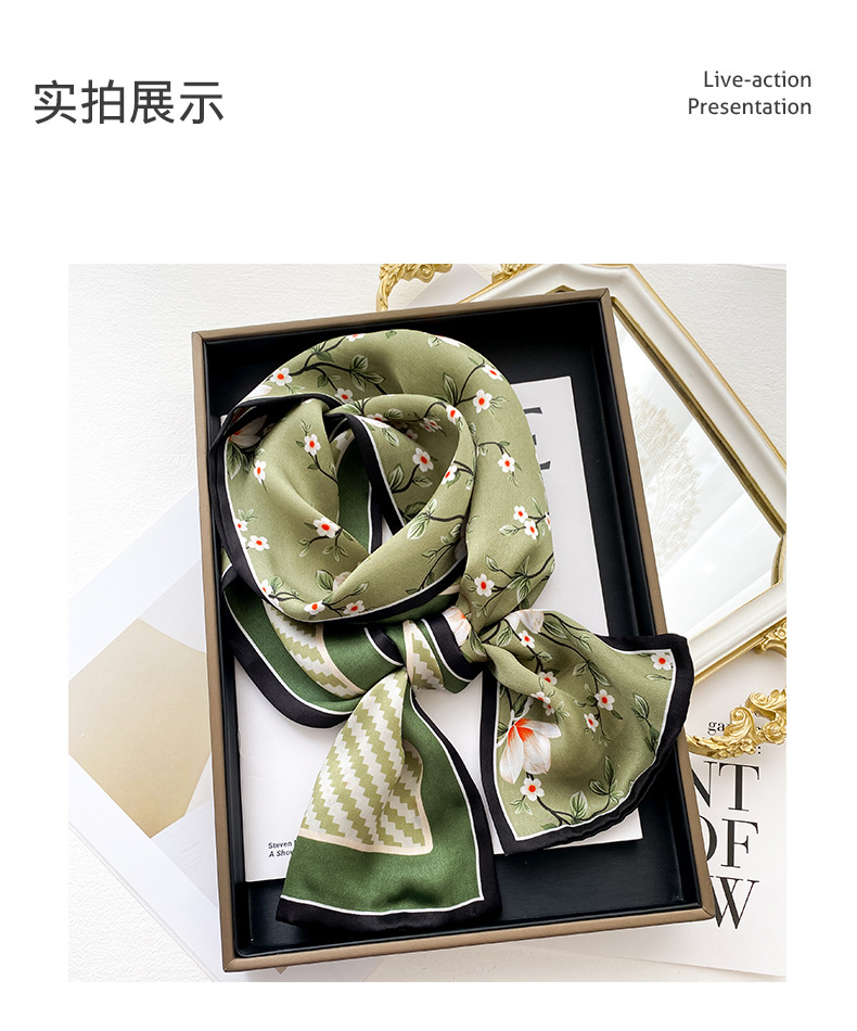 중국 스타일 스트라이프 플라워 양면 더블 컬러 실크 뽕나무 실크 더블 레이어 실크 스카프 어머니를위한 리본이 달린 여성용 긴 스카프