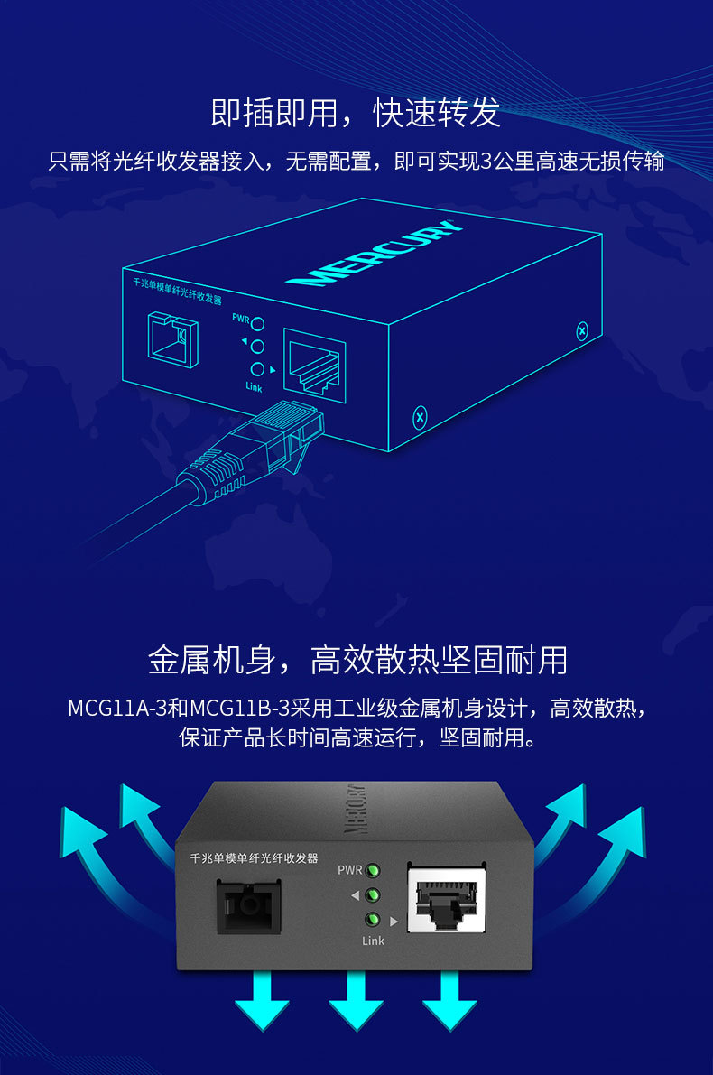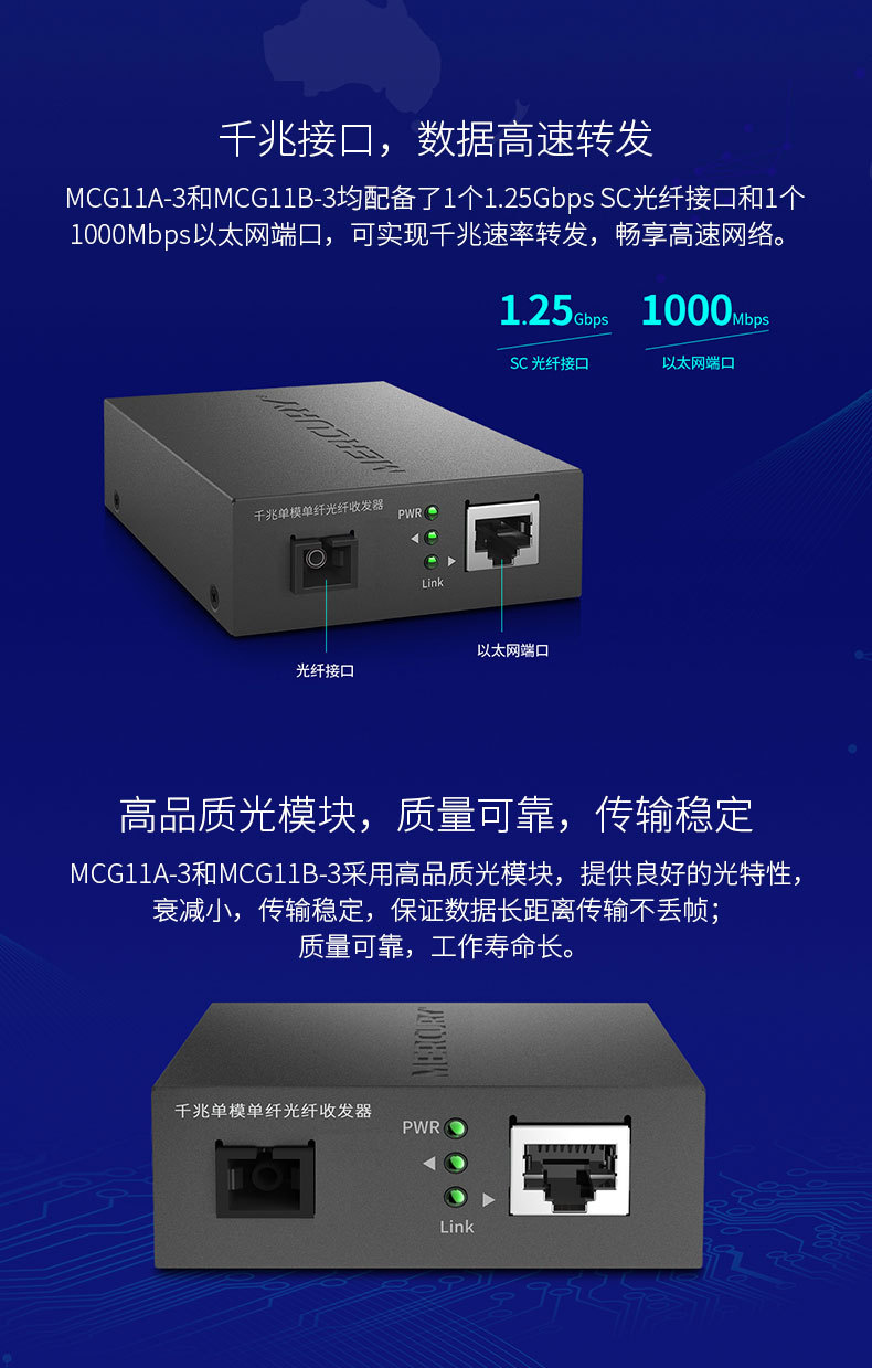 수은 MCG11A/B-3 기가비트 단일 모드 단일 광섬유 송수신기 1 광 1 전기 4 전기 8 전기 3km 전기에 광학스토어 가기
