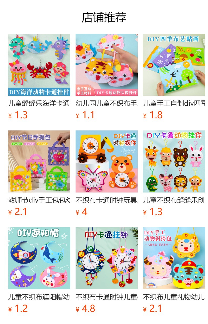 어린이 DIY 수제 부직포 가방 유치원 부직포 재료 소녀 교육 장난감스토어 가기