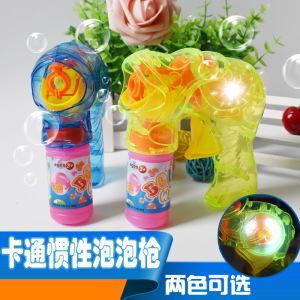 透明带灯光卡通惯性手动泡泡枪儿童趣味夏日发光玩具地摊热卖批发