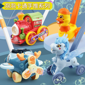 抖音新款儿童手推泡泡机飞机飞马萌鸭火车全自动出泡电动声光玩具