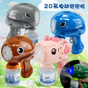 卡通小马鲨鱼恐龙20孔全自动电动泡泡枪灯光儿童玩具夜市地摊热卖