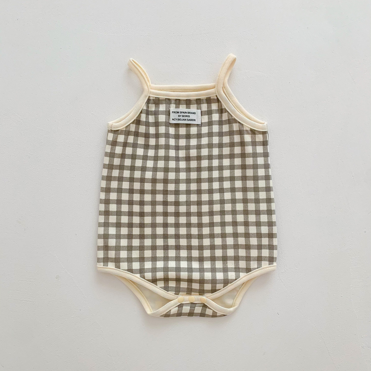 In 한국 스타일 아기 슬링 인쇄 격자 무늬 점프 수트 신생아 여름 얇은 조끼 삼각형 등반 세트스토어 가기