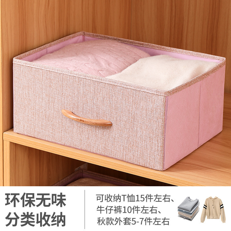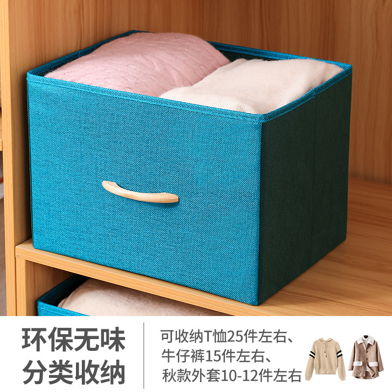 국경 간 직물 가정용 옷장 접이식 대형 옷 조직 상자 보관 나무 손잡이 서랍 보관 상자