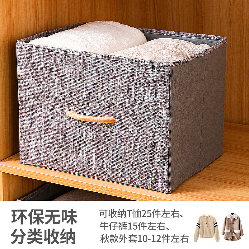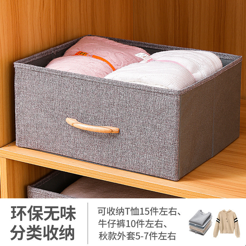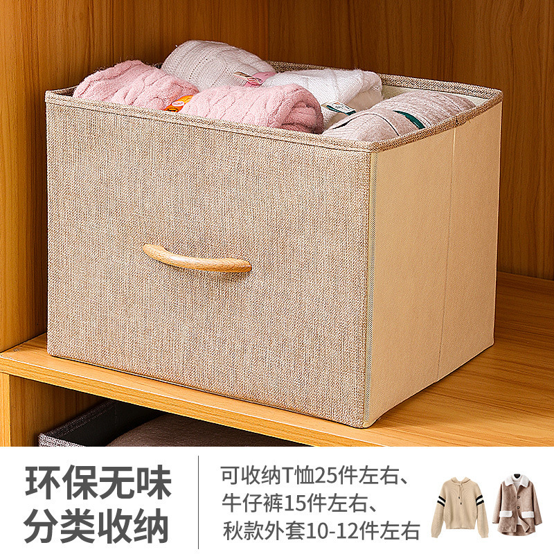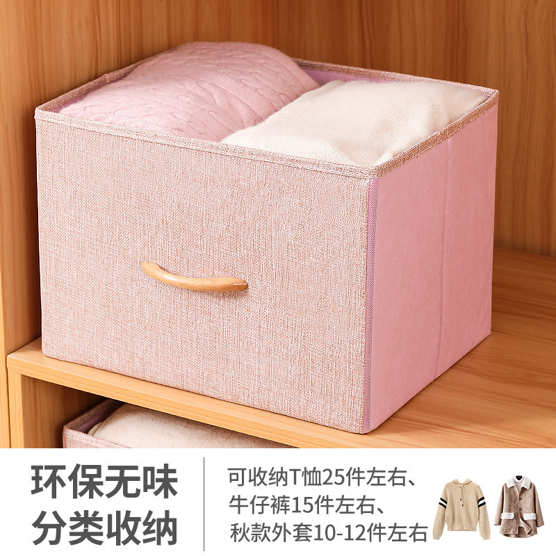 국경 간 직물 가정용 옷장 접이식 대형 옷 조직 상자 보관 나무 손잡이 서랍 보관 상자스토어 가기