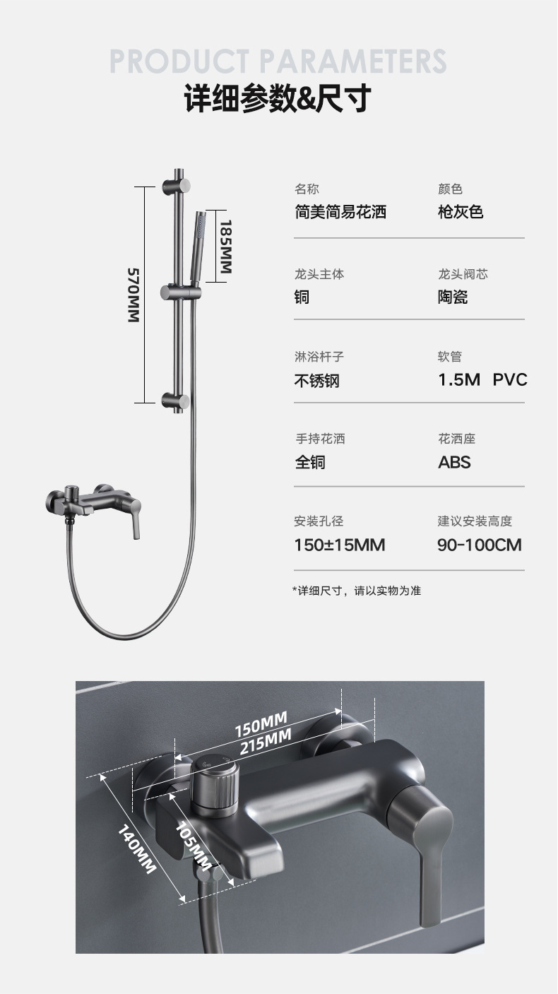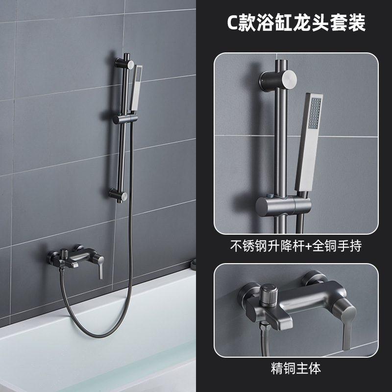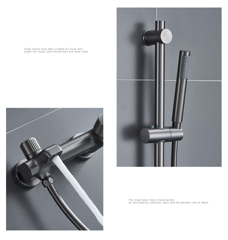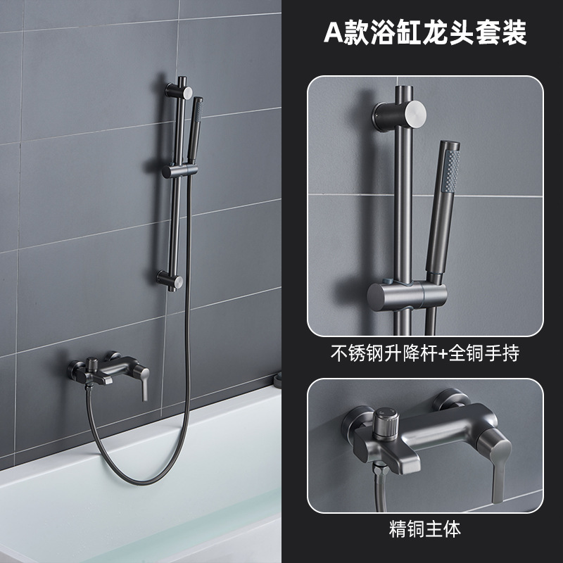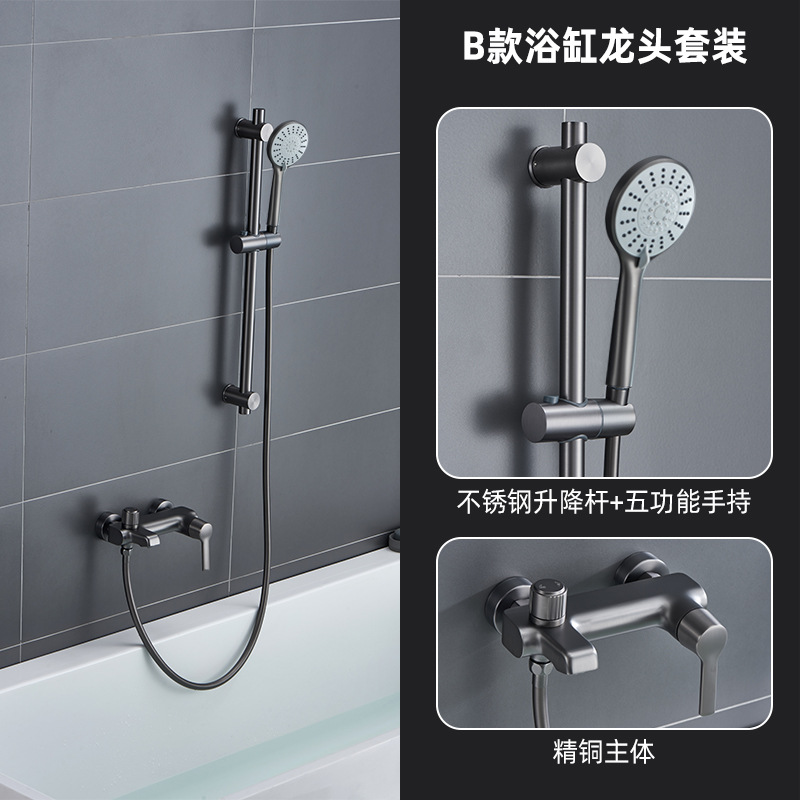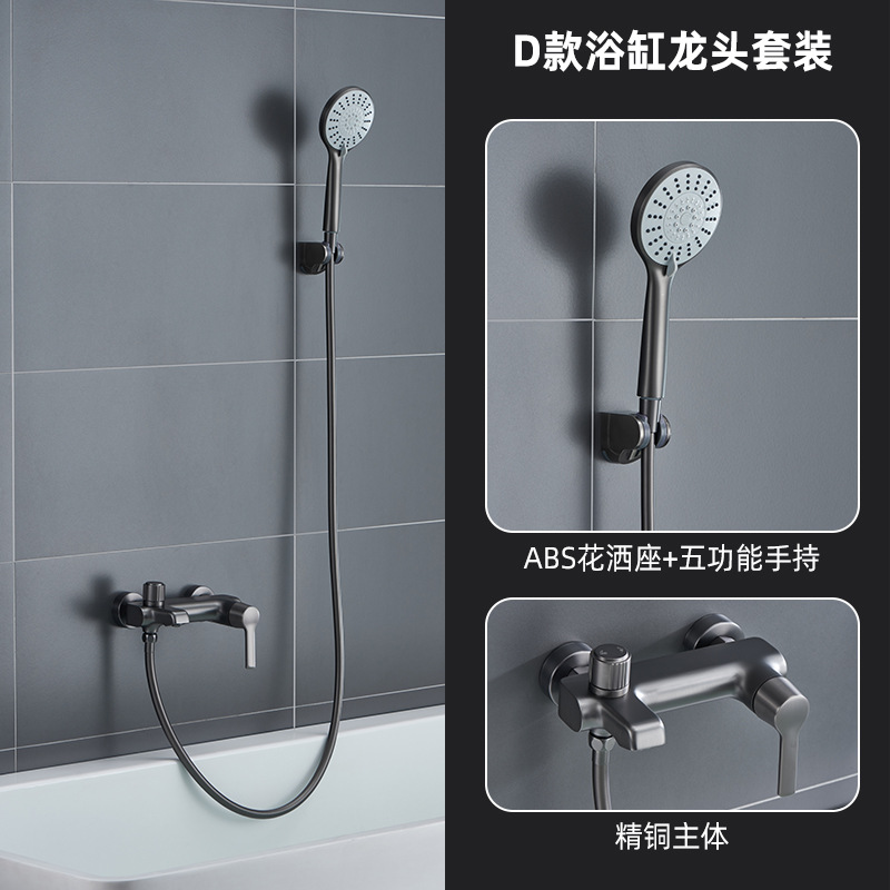 무쿠 건 그레이 모든 구리 샤워 간단한 샤워 가정용 세트 온수 및 냉수 혼합 밸브 목욕 수도꼭지