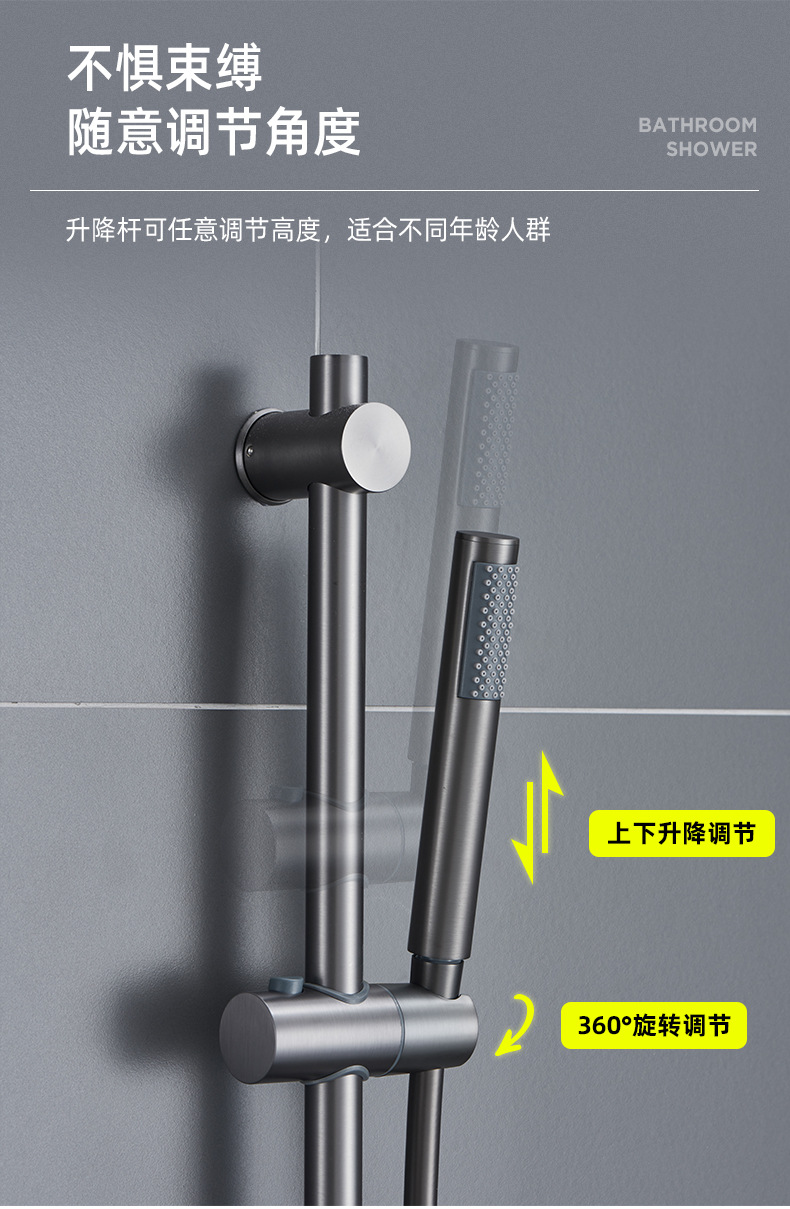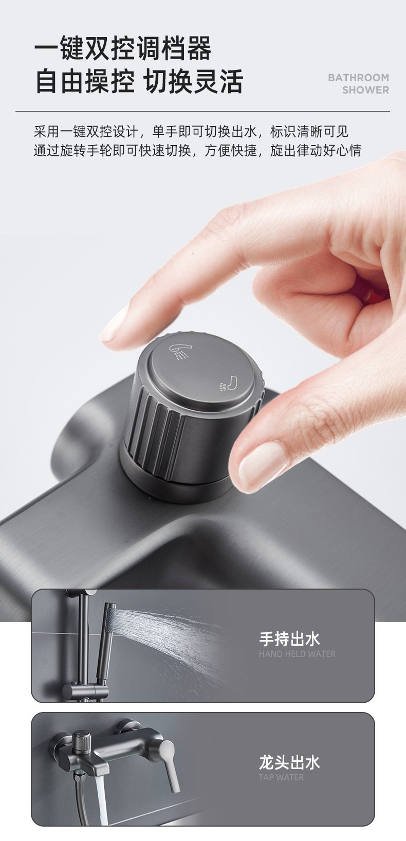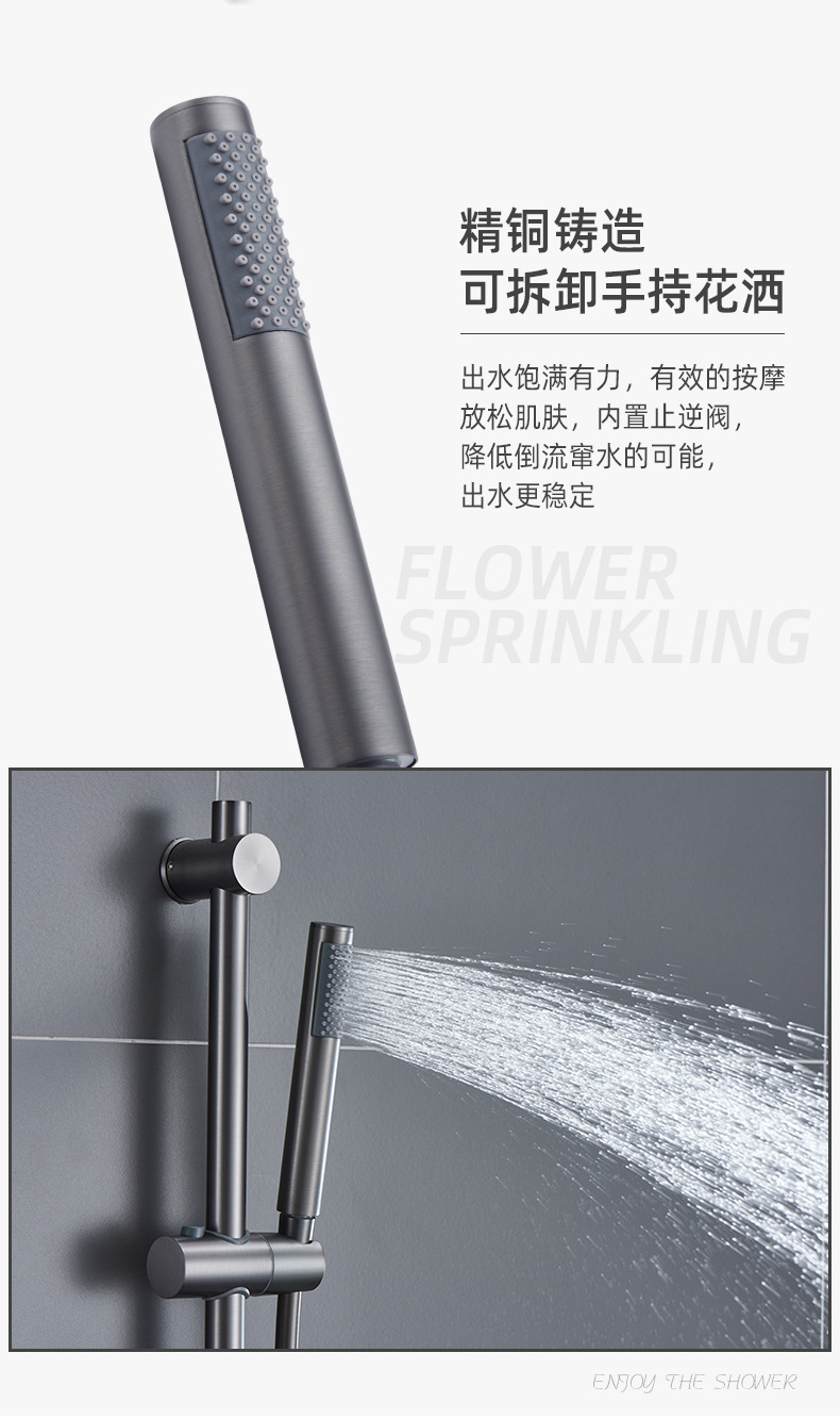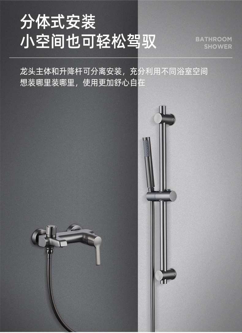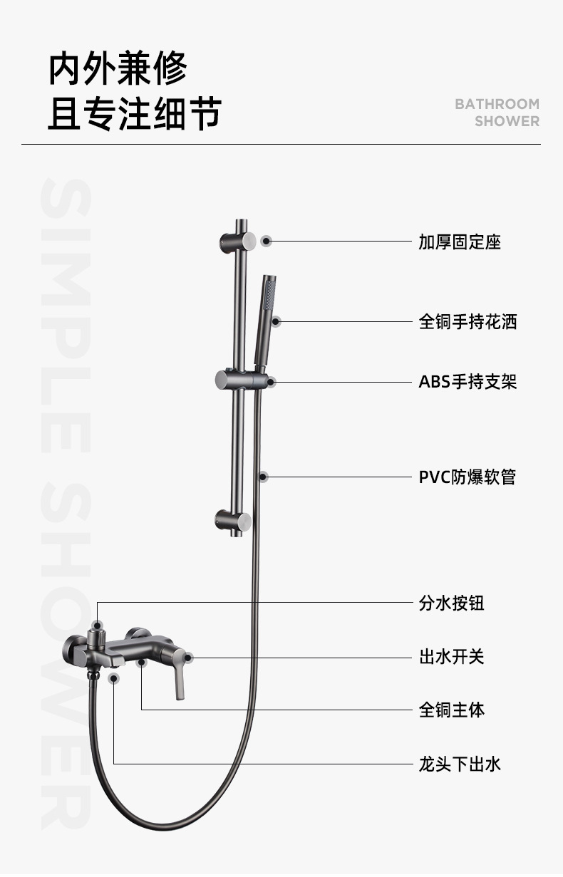 무쿠 건 그레이 모든 구리 샤워 간단한 샤워 가정용 세트 온수 및 냉수 혼합 밸브 목욕 수도꼭지