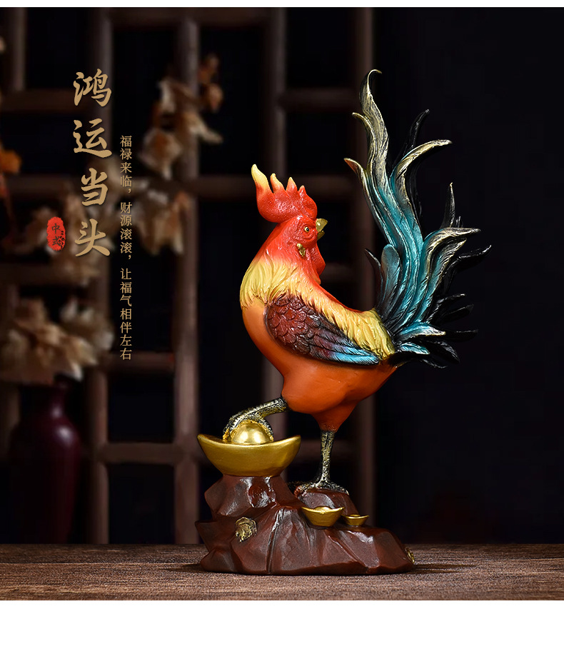국경을 넘는 황금 닭 장식품, 황금 수탉 조각상, 열두 띠 공예품, 가정 거실 와인 캐비닛 장식품, 고급품스토어 가기