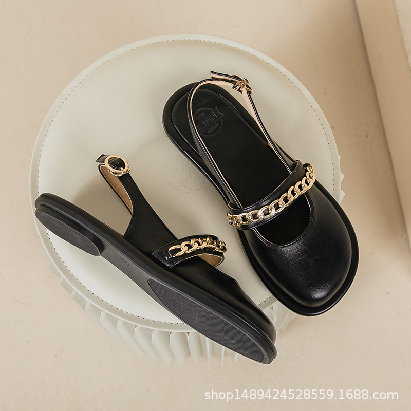 발가락 플랫 버클 샌들 여자의 겉옷 라운드 발가락 얕은 입 메리 제인 신발 플랫 메탈 버클 스트랩 소프트 솔 신발스토어 가기