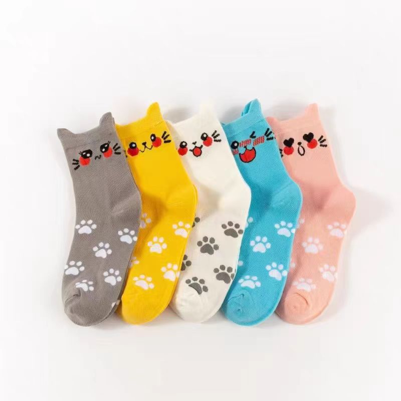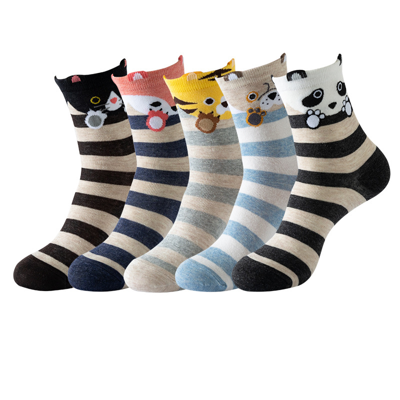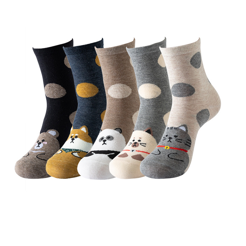 여성 재미 개 고양이 양말 동물 여성 양말 국경 면화 캐주얼 고양이 만화 크리스마스 선물 중간 참신
