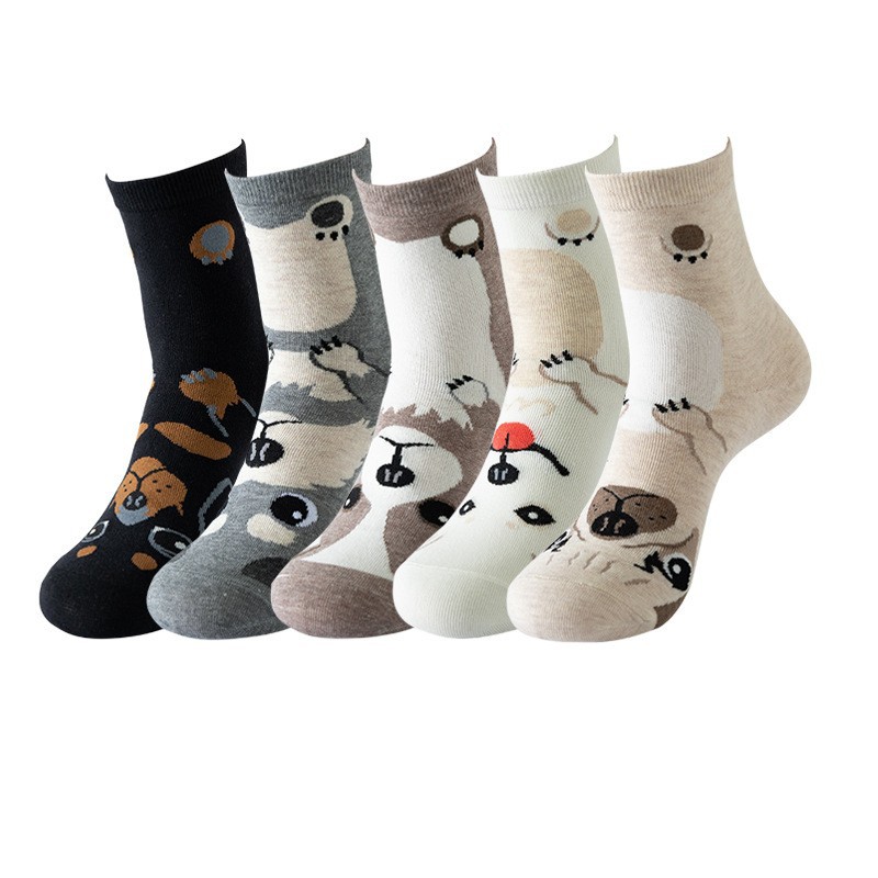 여성 재미 개 고양이 양말 동물 여성 양말 국경 면화 캐주얼 고양이 만화 크리스마스 선물 중간 참신스토어 가기