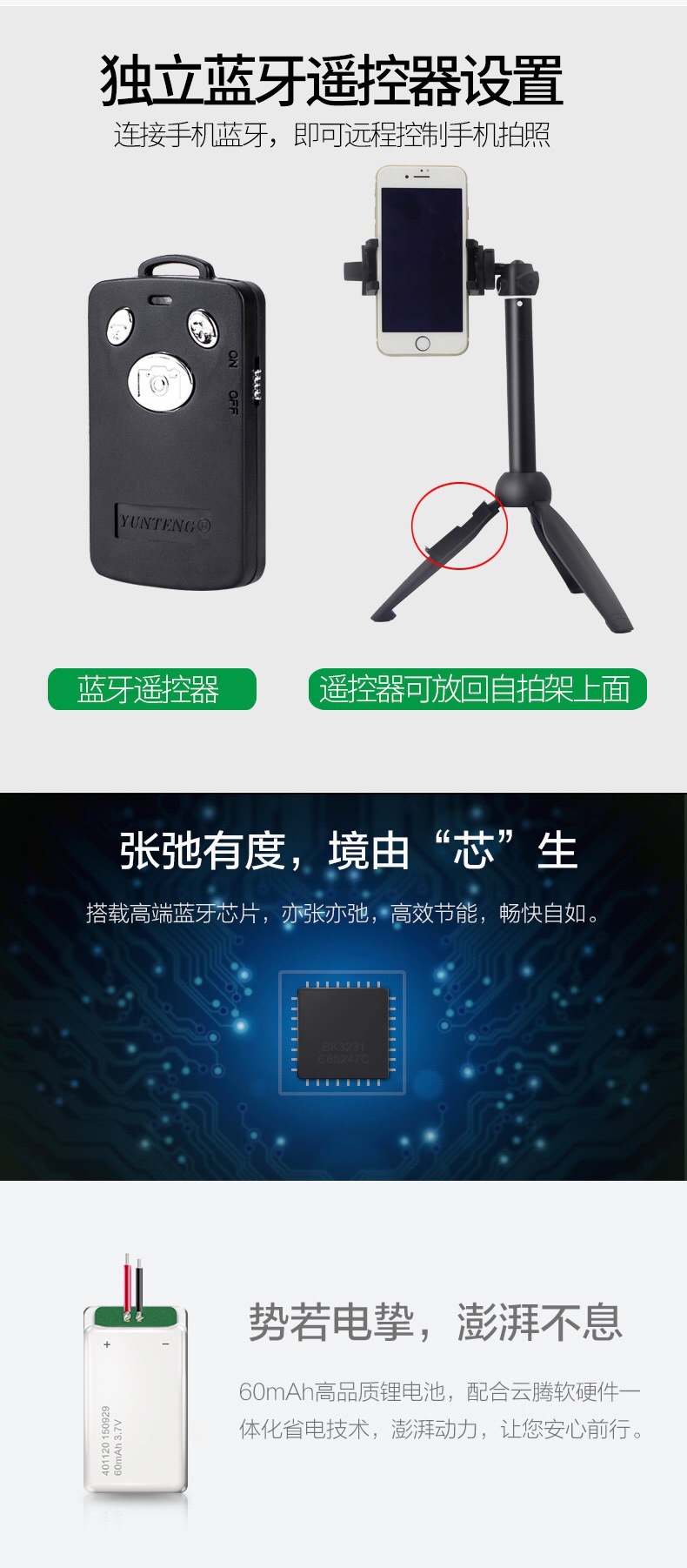 Yunteng 9928 휴대 전화 셀카 스틱 삼각대 휴대용 미니 데스크탑 블루투스 원격 제어 셀카 유물 라이브 방송 스탠드