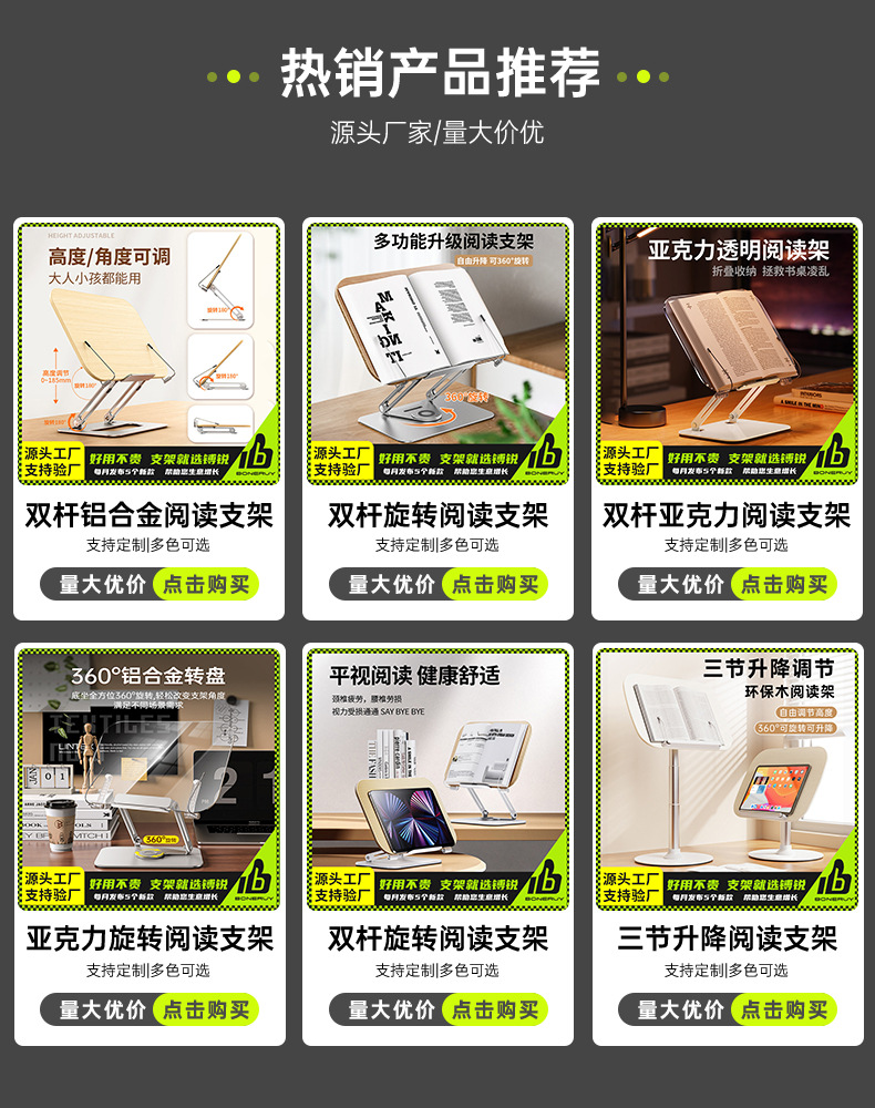 보너루이 독서 스탠드는 360도 접이식 학습 독서대 알루미늄 합금 데스크탑 독서대 회전 가능스토어 가기