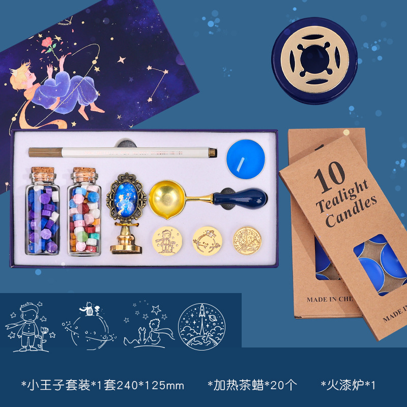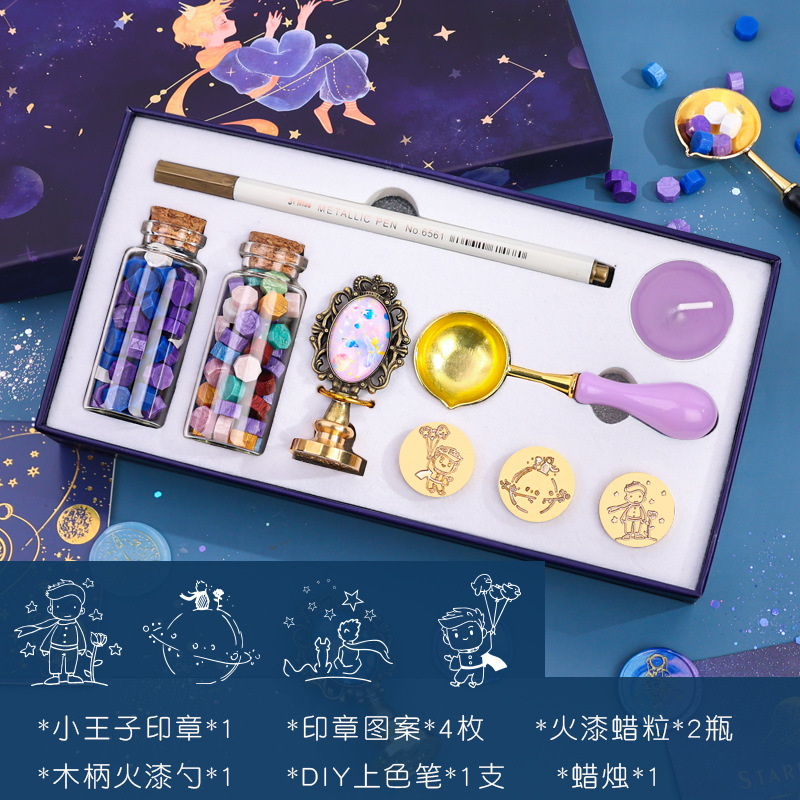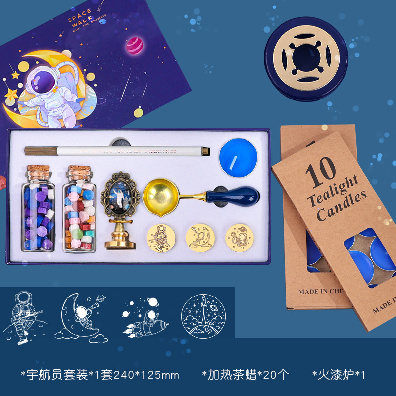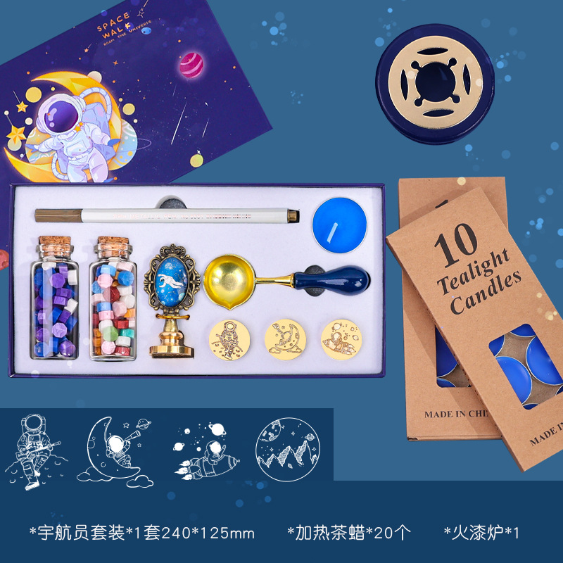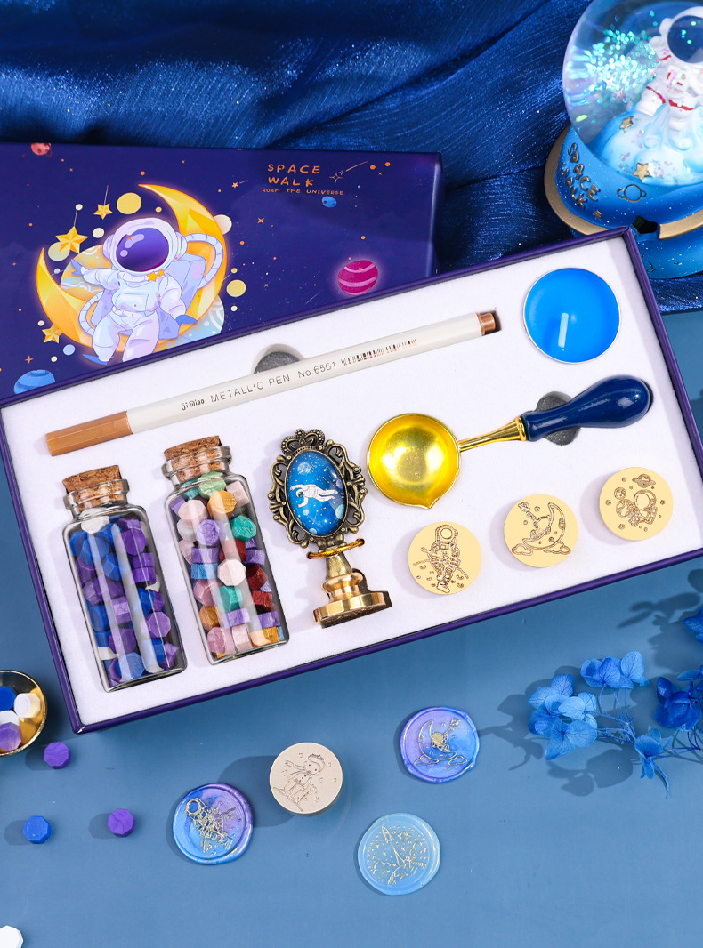 우주 비행사 래커 스탬프 선물 상자 어린 왕자 은하 우주 비행사 스탬프 헤드 봉투 씰링 왁스 곡물로 핀셋