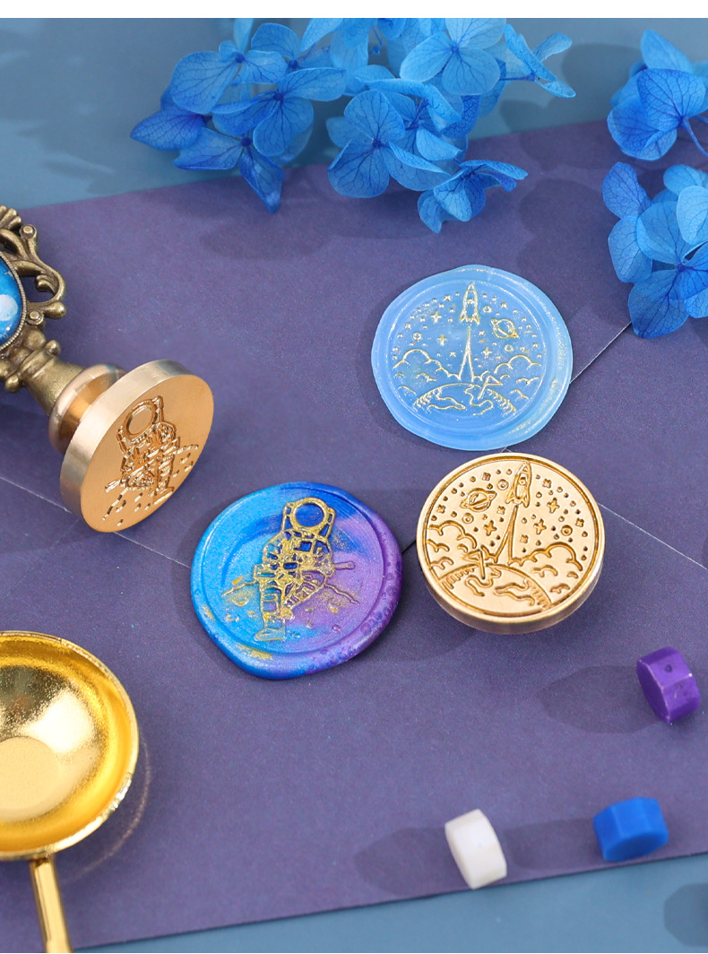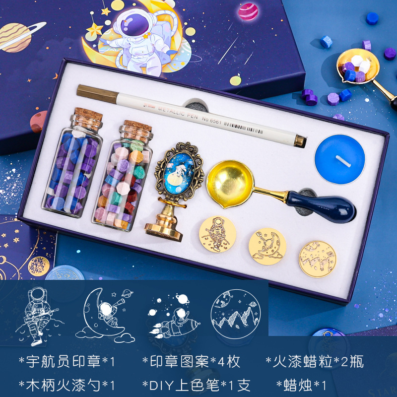 우주 비행사 래커 스탬프 선물 상자 어린 왕자 은하 우주 비행사 스탬프 헤드 봉투 씰링 왁스 곡물로 핀셋스토어 가기