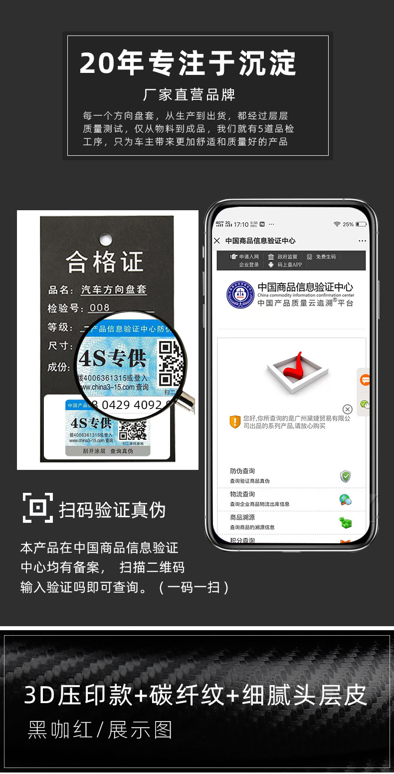 • 3D 엠보싱 탄소 섬유 가죽 + 3 색 표준 + 자동차 로고 + 레드 + 라운드